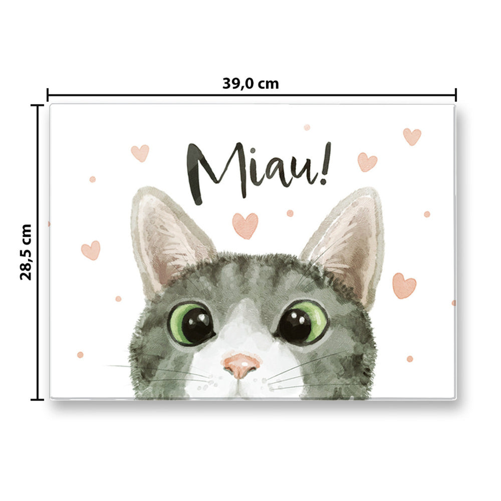 Miau Katze Schneidebrett aus Glas