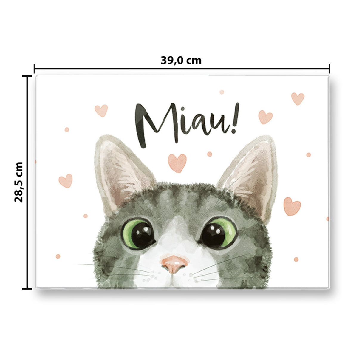 - Lieferumfang: 1x Miau Katze Schneidebrett aus Glas in 39x28cm