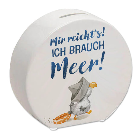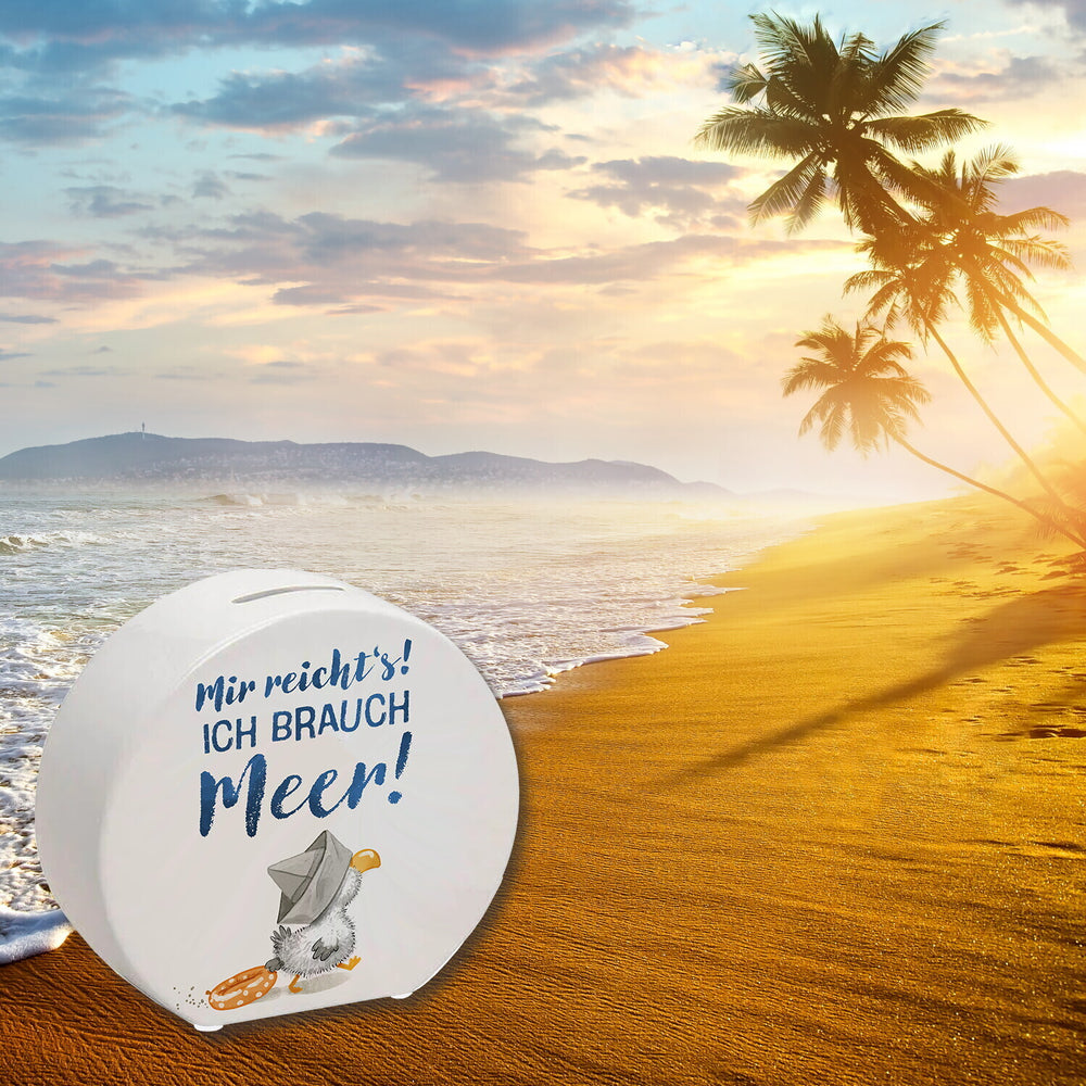 - Wer braucht schon Schweine, wenn man eine Möwe haben kann? Diese freche Möwe mit Schwimmreifen ist die ideale Spardose für deine Urlaubskasse! Mit dem Spruch "Mir reicht‘s ich brauch Meer!" ist sie die perfekte Motivationshilfe für deinen nächsten Strandurlaub.
