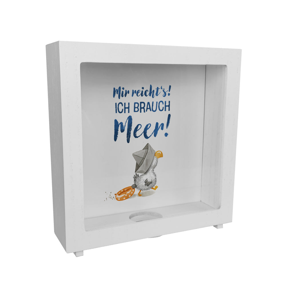 Möwe mit Schwimmreifen Spardose mit Spruch Mir reicht‘s ich brauch Meer