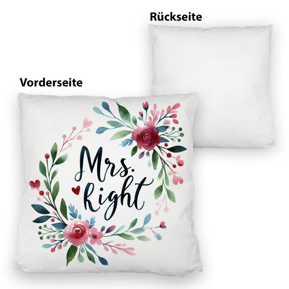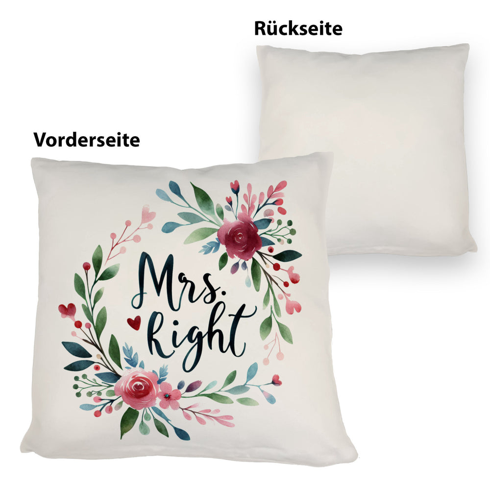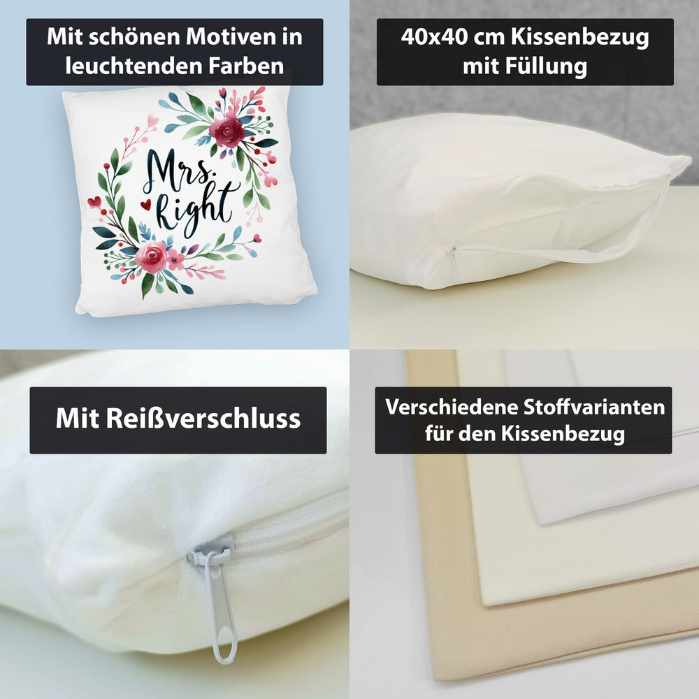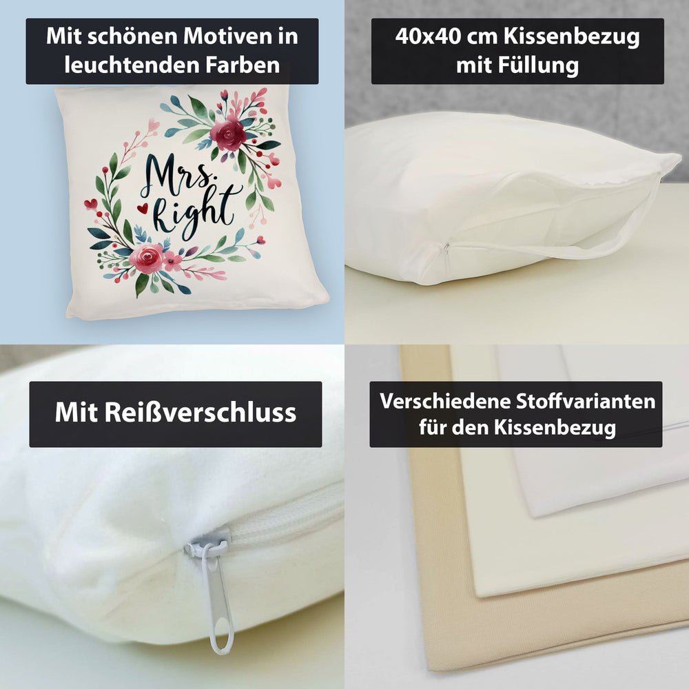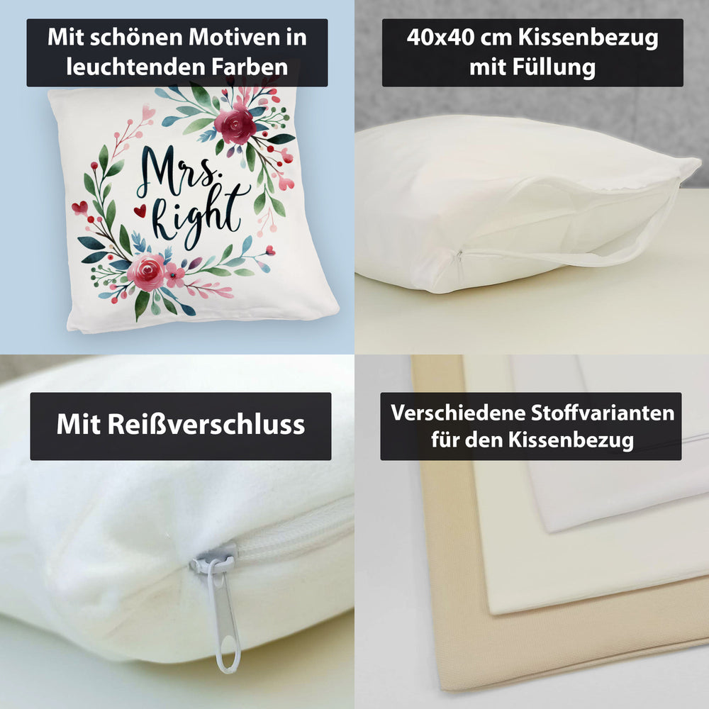 - 1x Mrs Right Kissen in der gewählten Ausführung