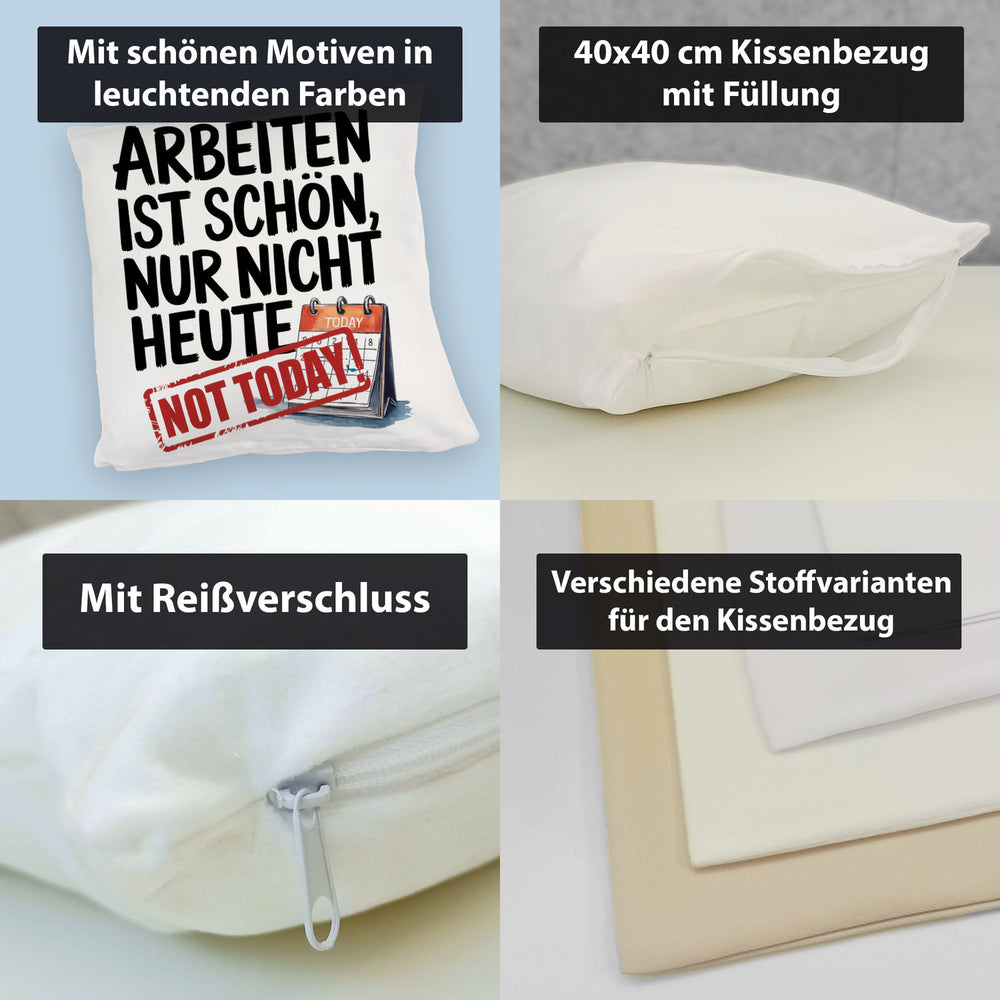 - 1x Nicht heute Arbeiten Kissen Arbeiten ist schön in der gewählten Ausführung