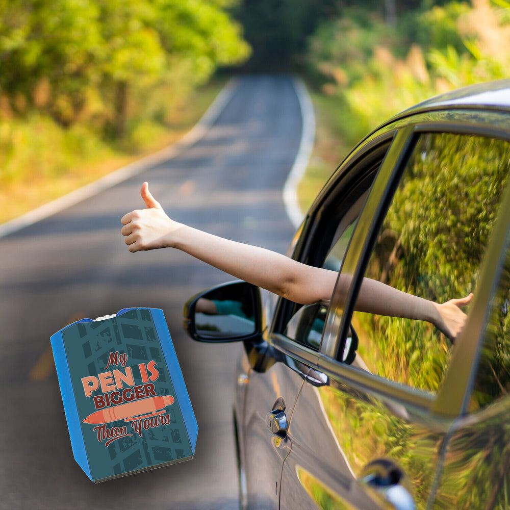 Penis Parkscheibe mit Spruch My Pen is bigger than yours ist auf Lager und wird versandt, sobald es wieder verfügbar ist