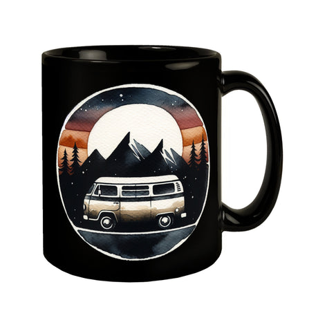 Wohnmobil vor einer Berglandschaft Tasse schwarz in Schwarz