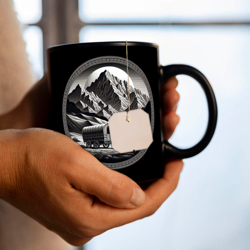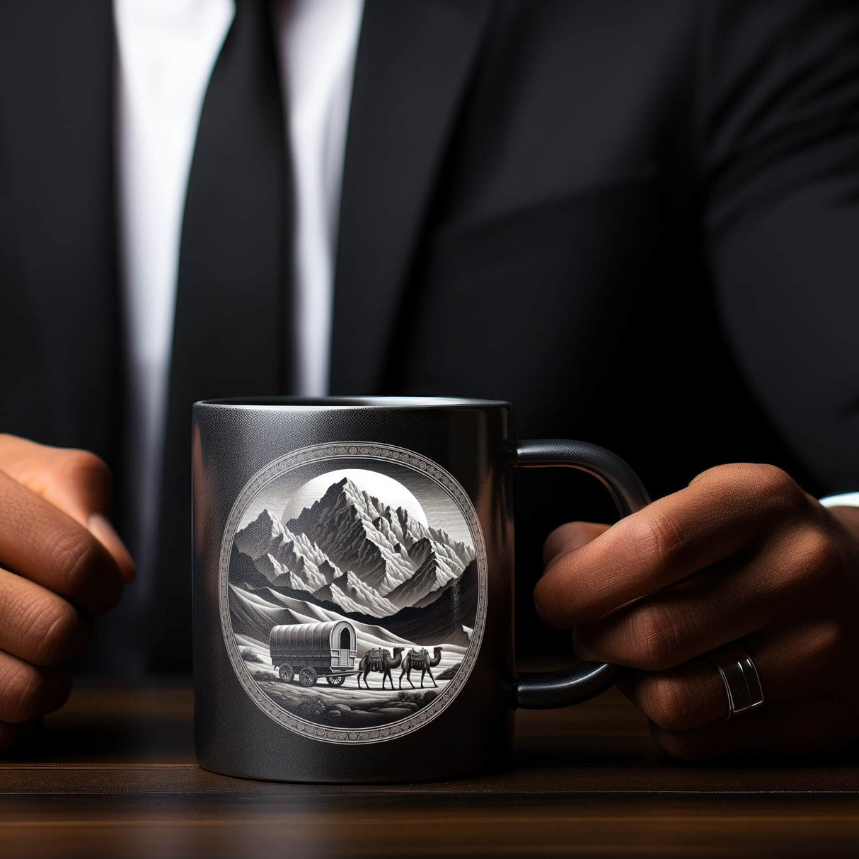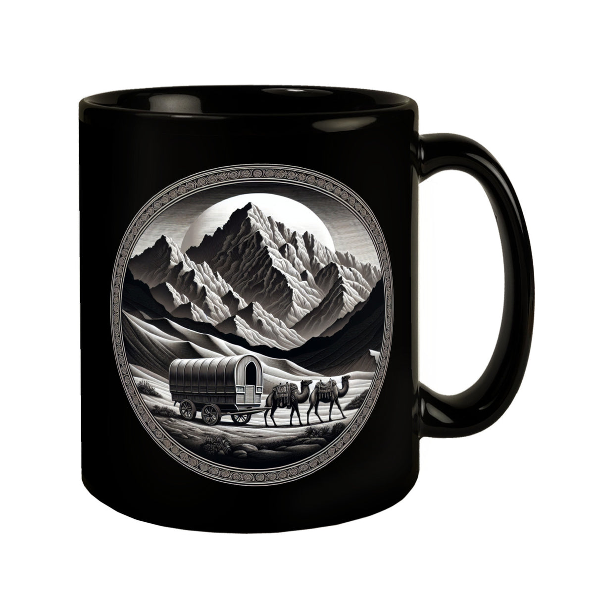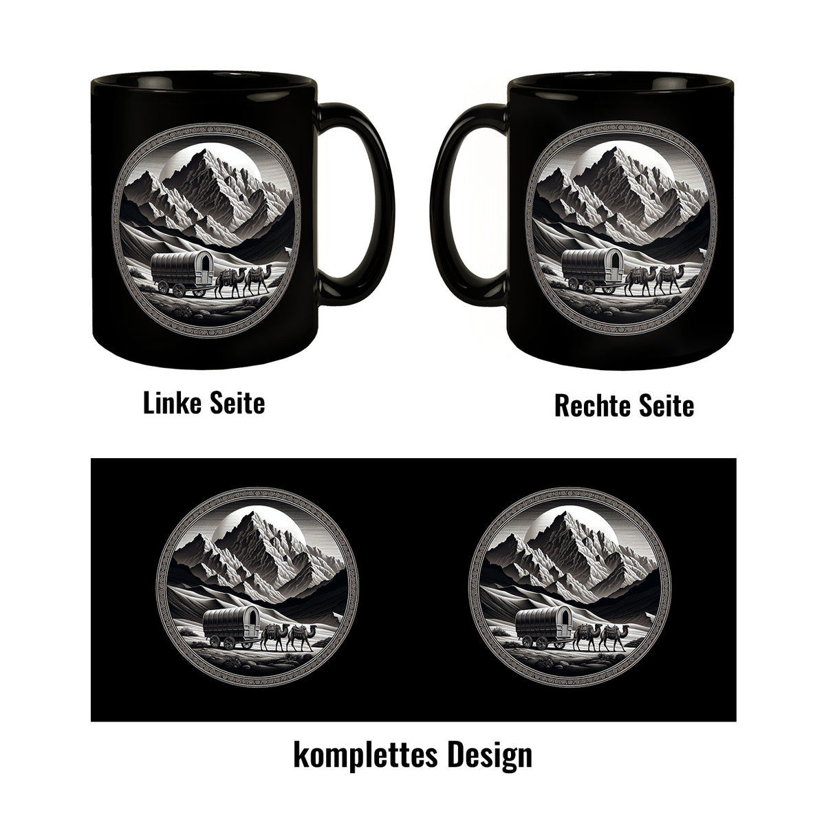 - Lieferumfang: 1x Planwagen mit zwei Kamelen Tasse schwarz in Schwarz