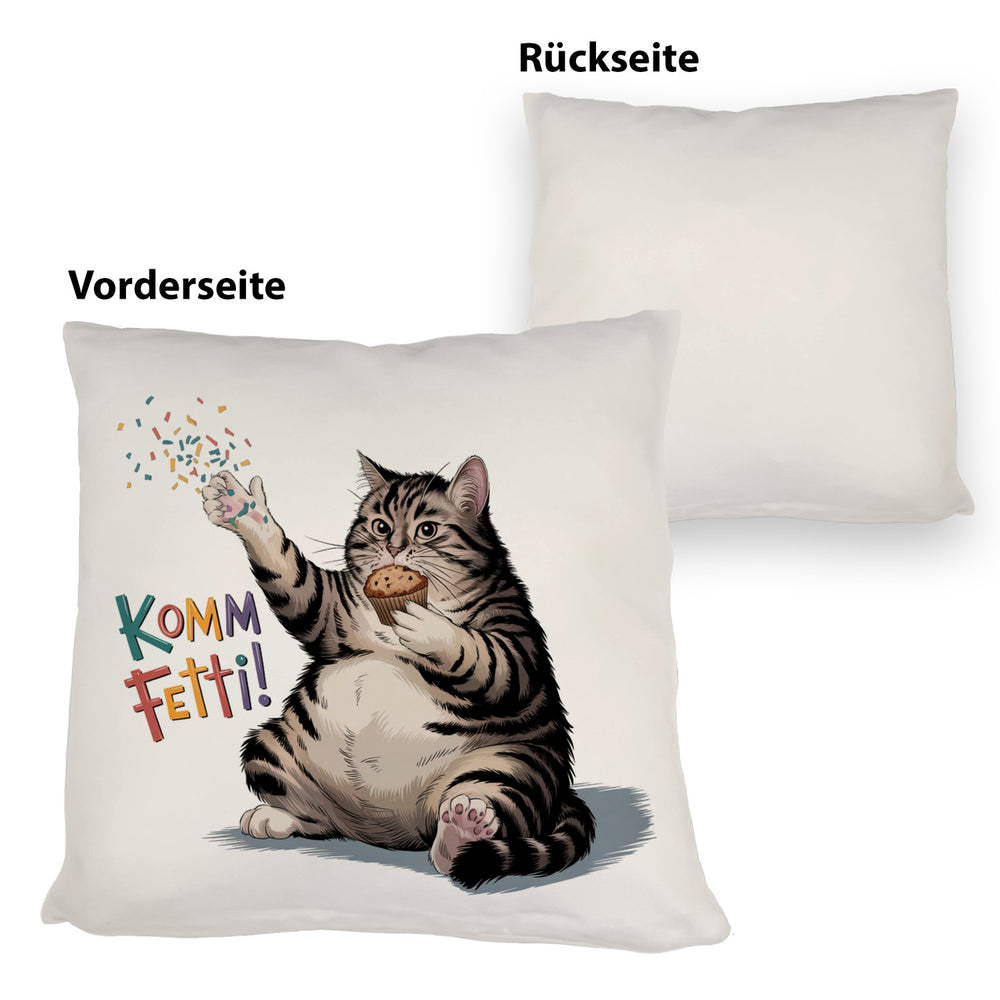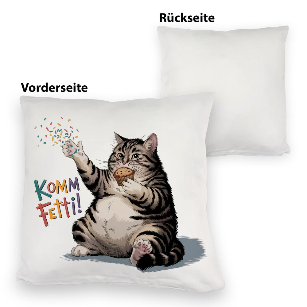 - 1x Pummelige Katze Kissen - Komm Fetti in der gewählten Ausführung