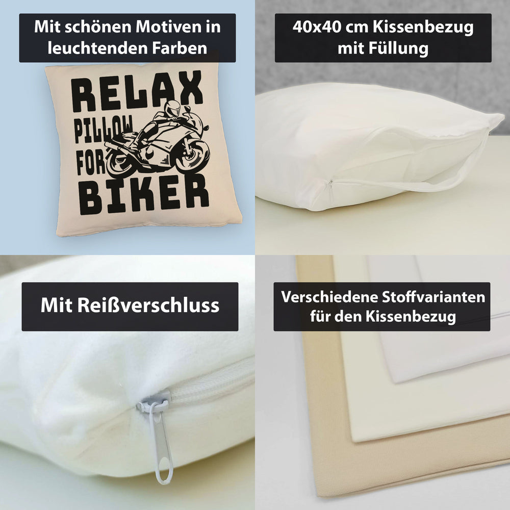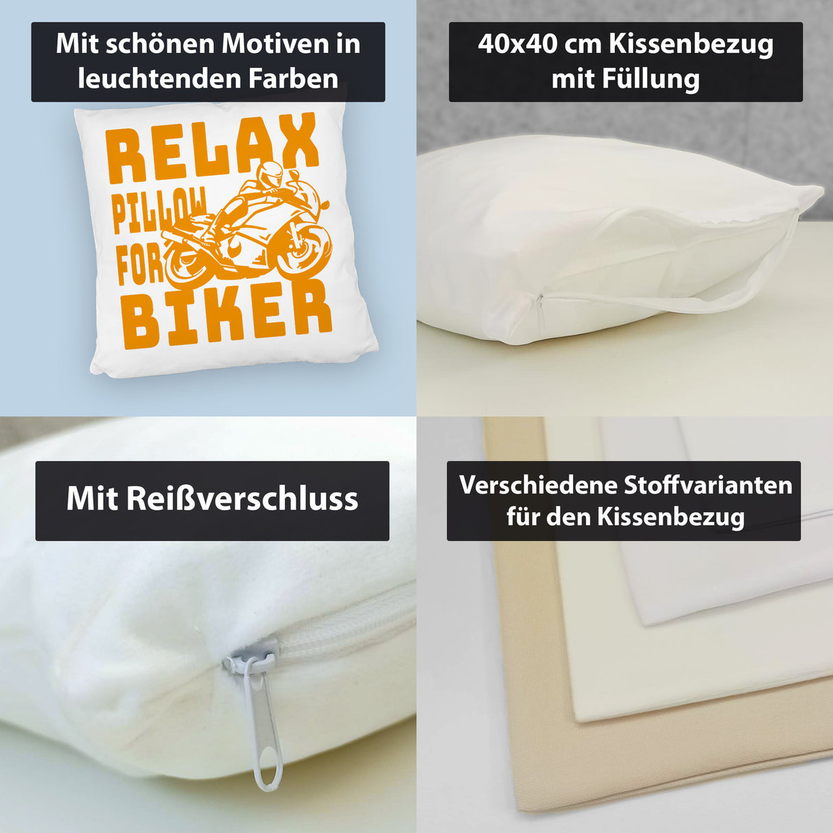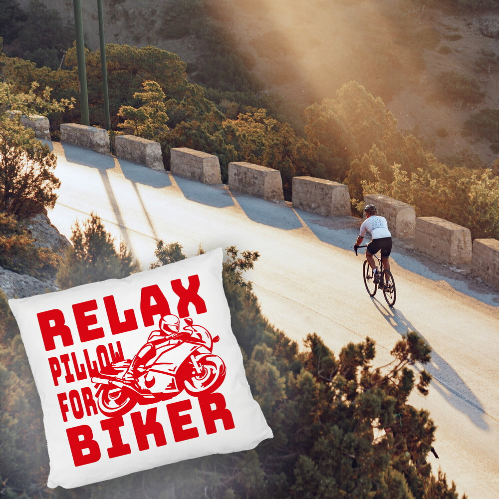 Relax Biker Kissen mit Motorradfahrer Motiv