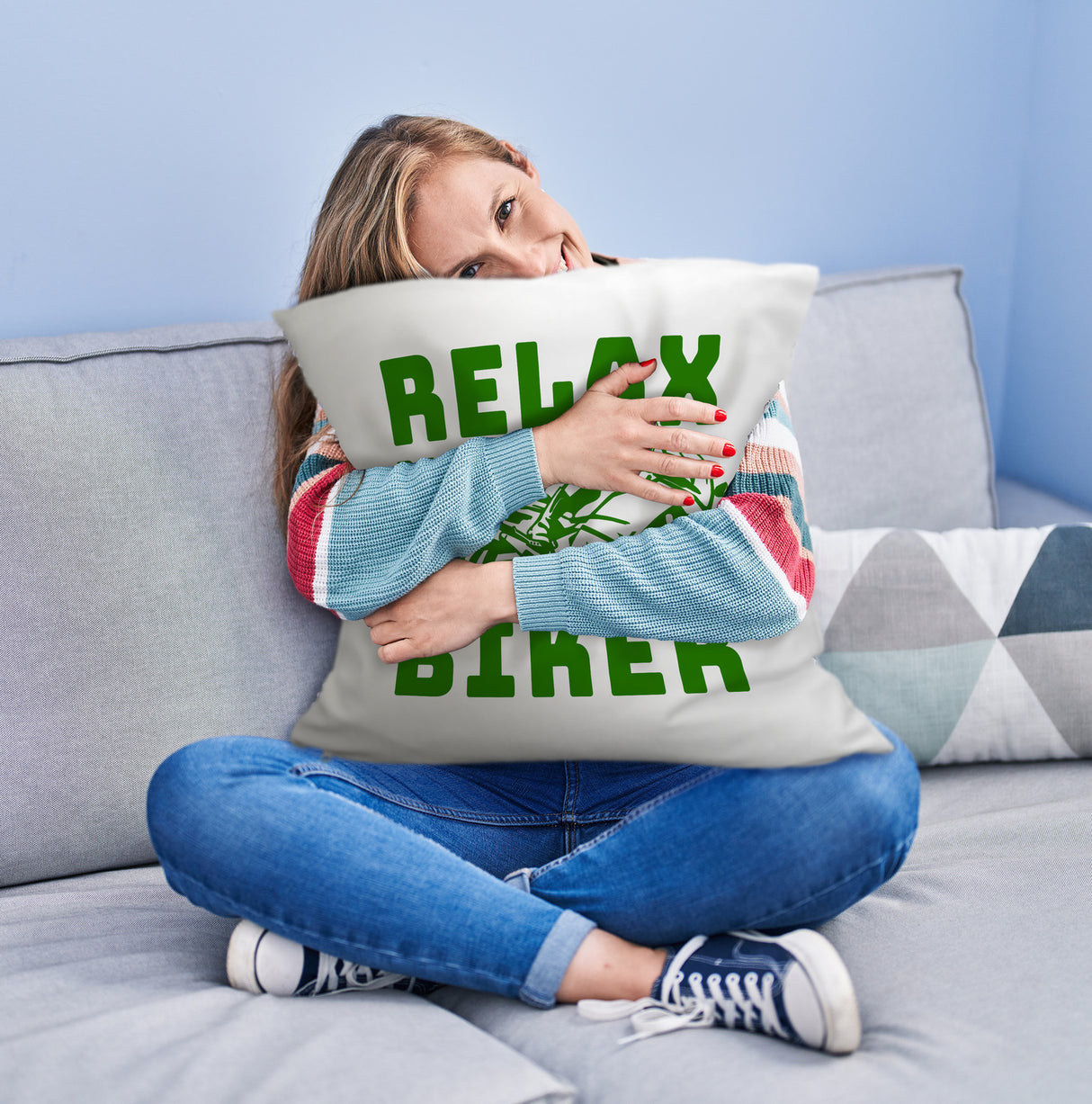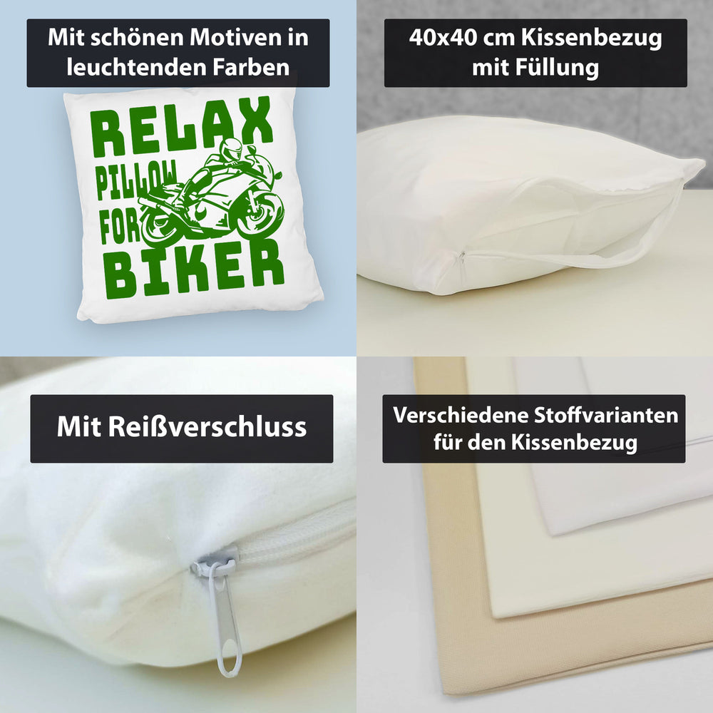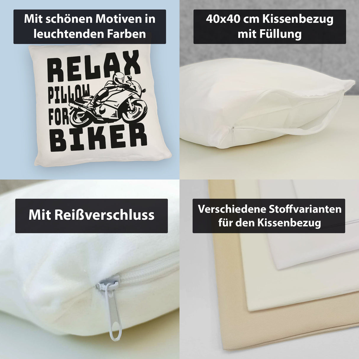 Relax Biker Kissen mit Motorradfahrer Motiv