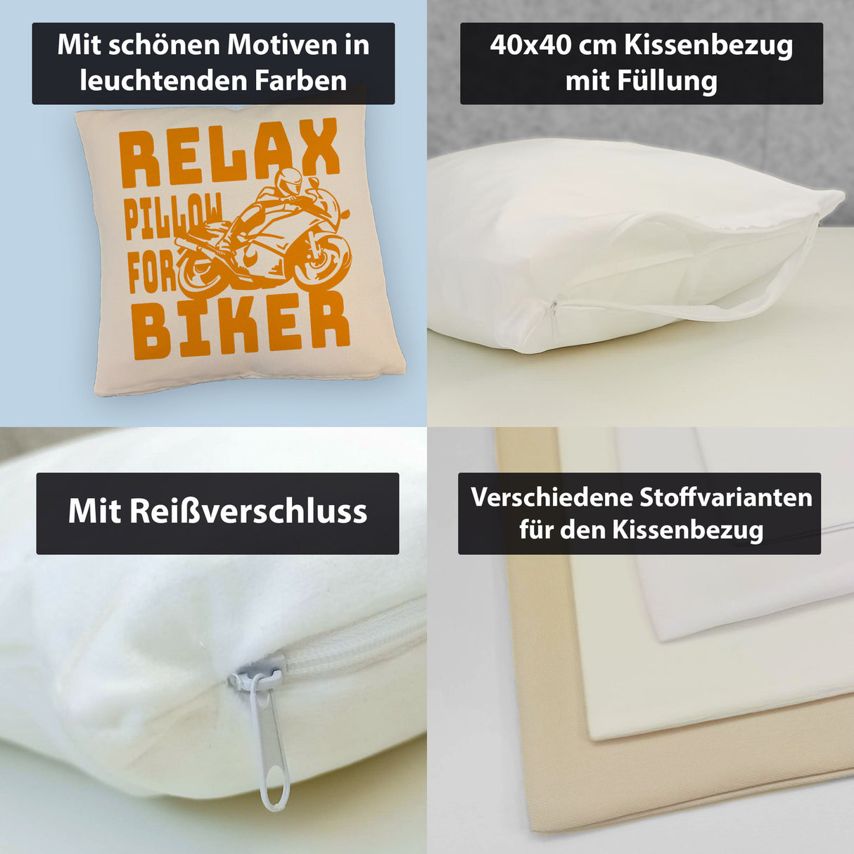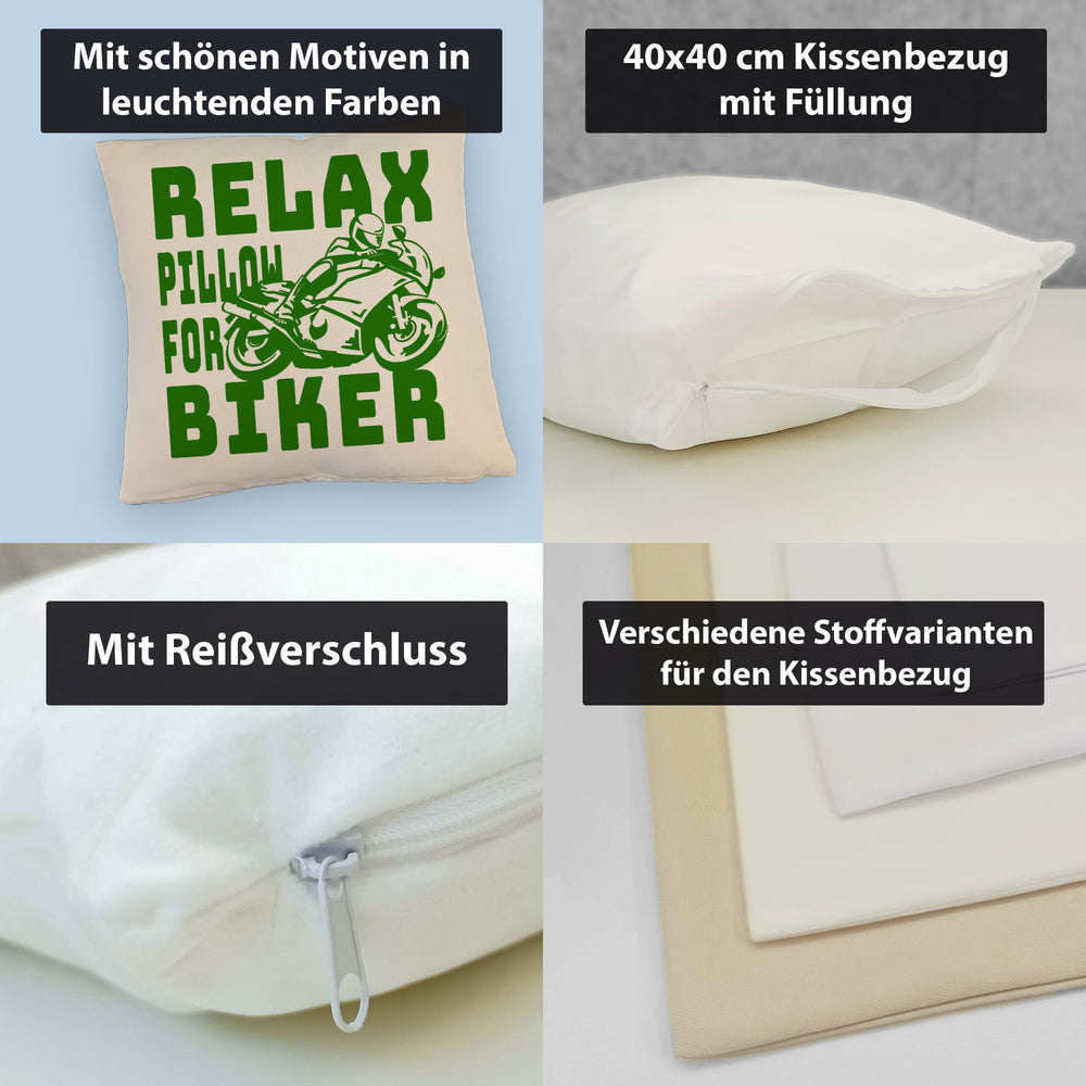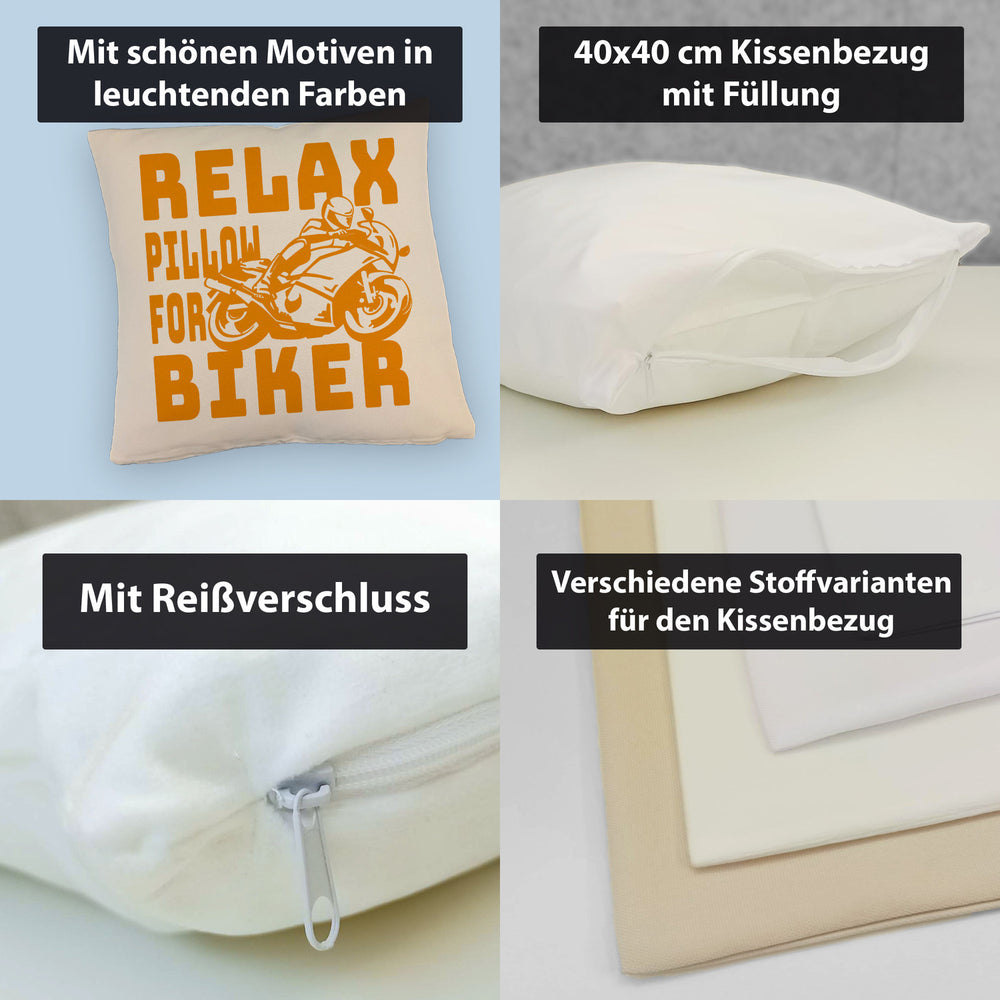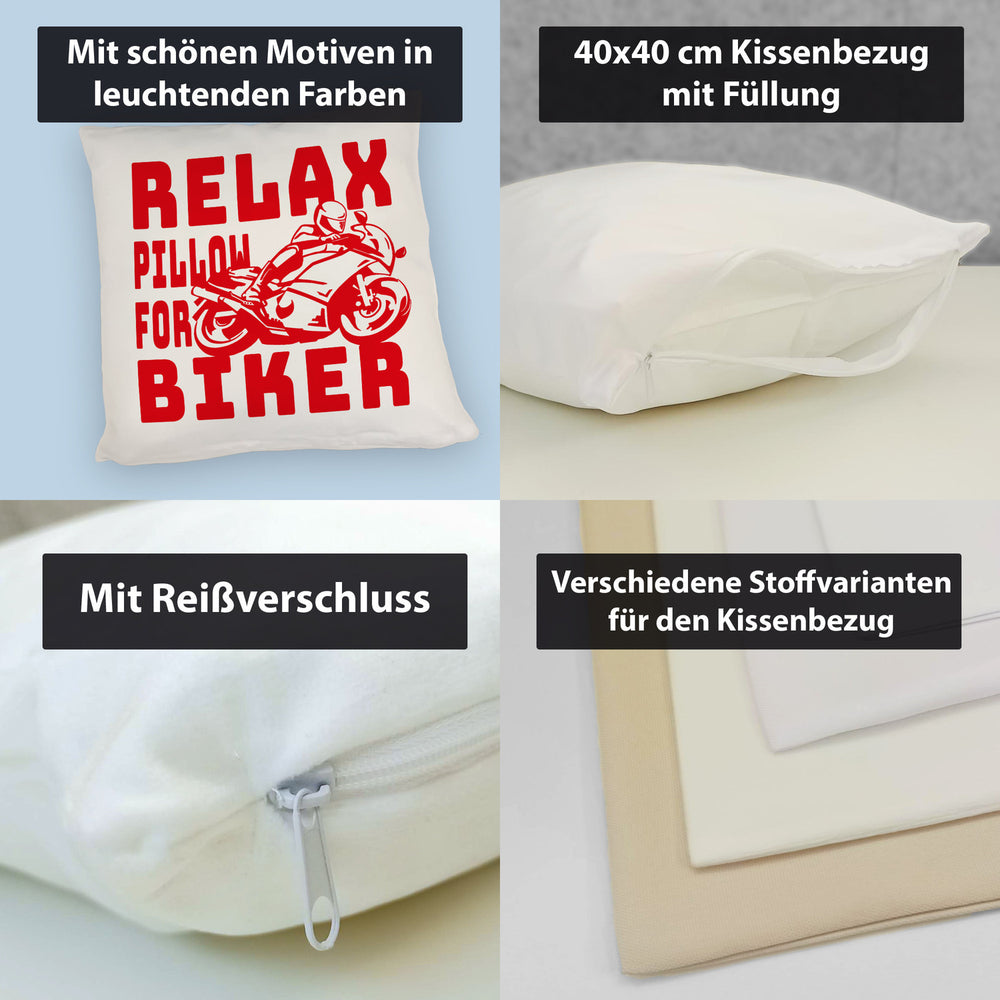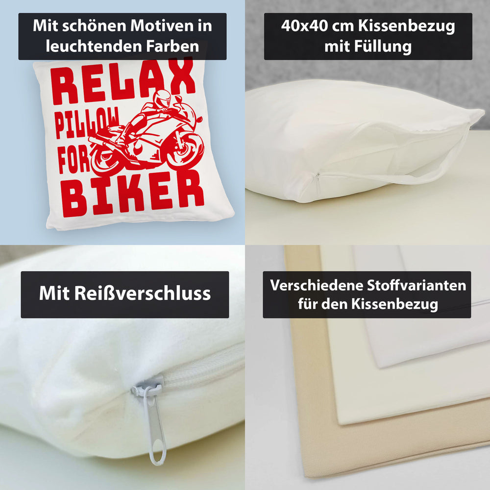 - 1x Relax Biker Kissen mit Motorradfahrer Motiv in der gewählten Ausführung