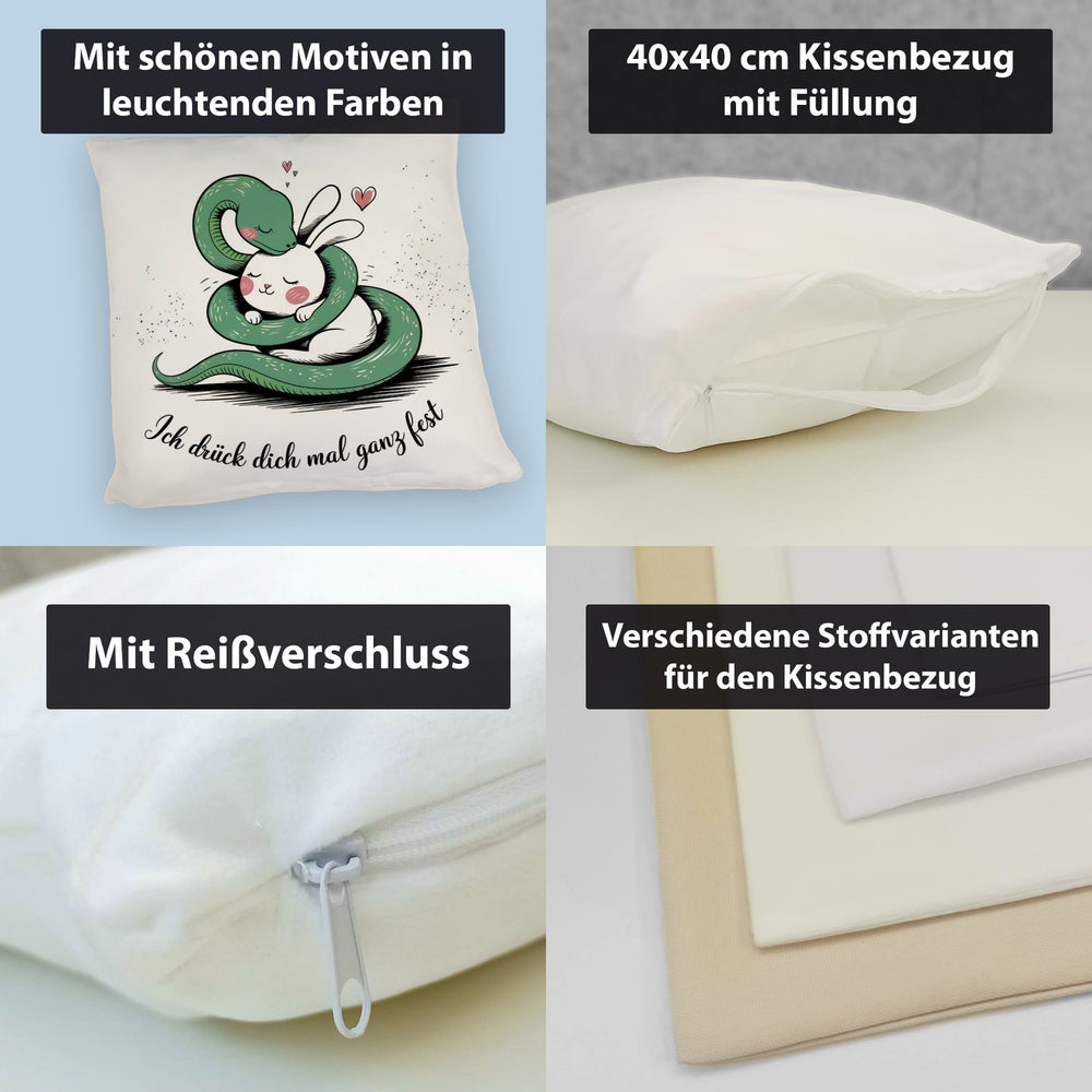 - 1x Schlange und Kaninchen Kissen - Ich drück dich fest in der gewählten Ausführung