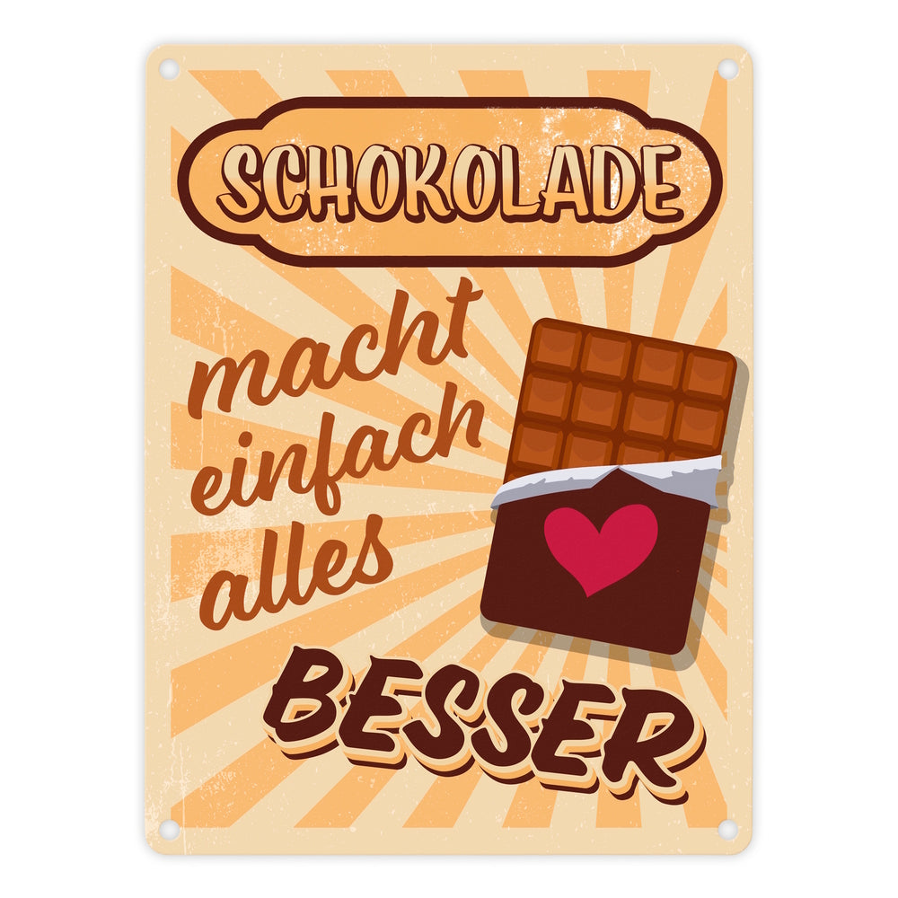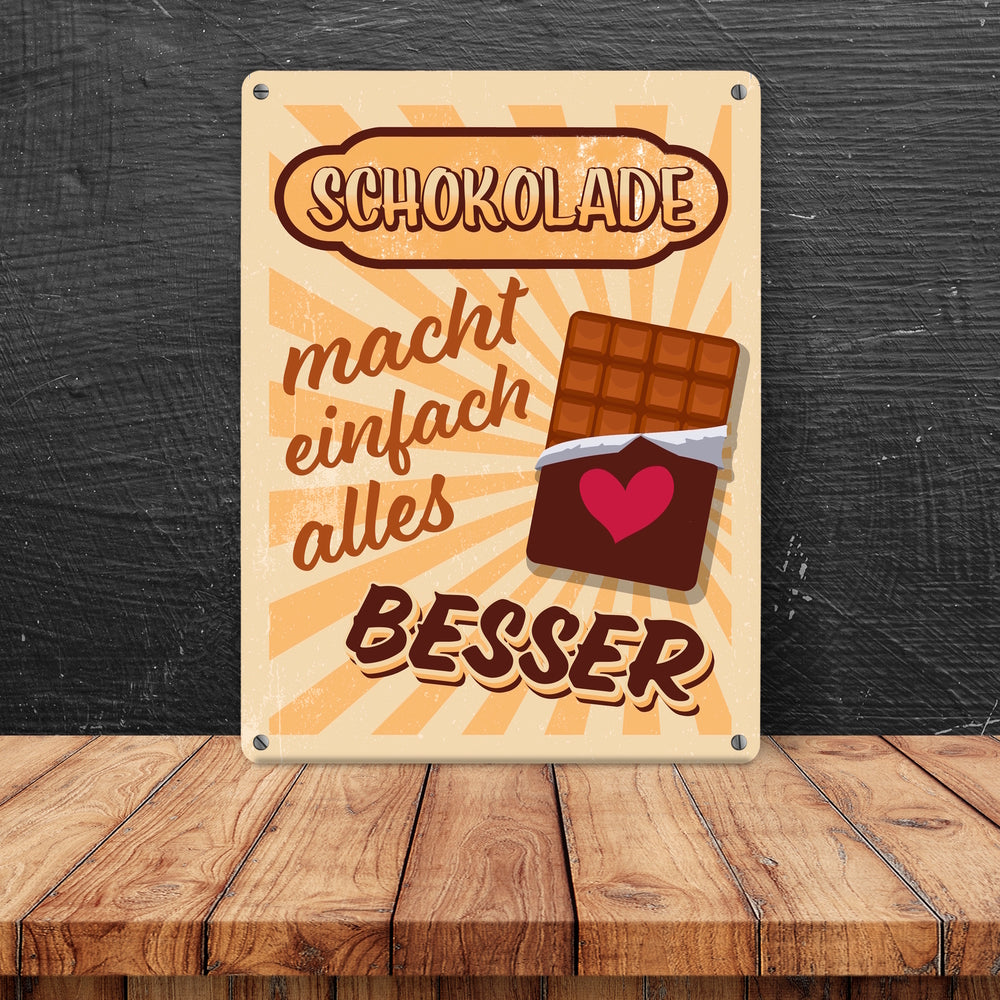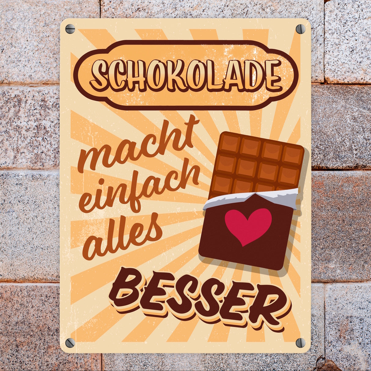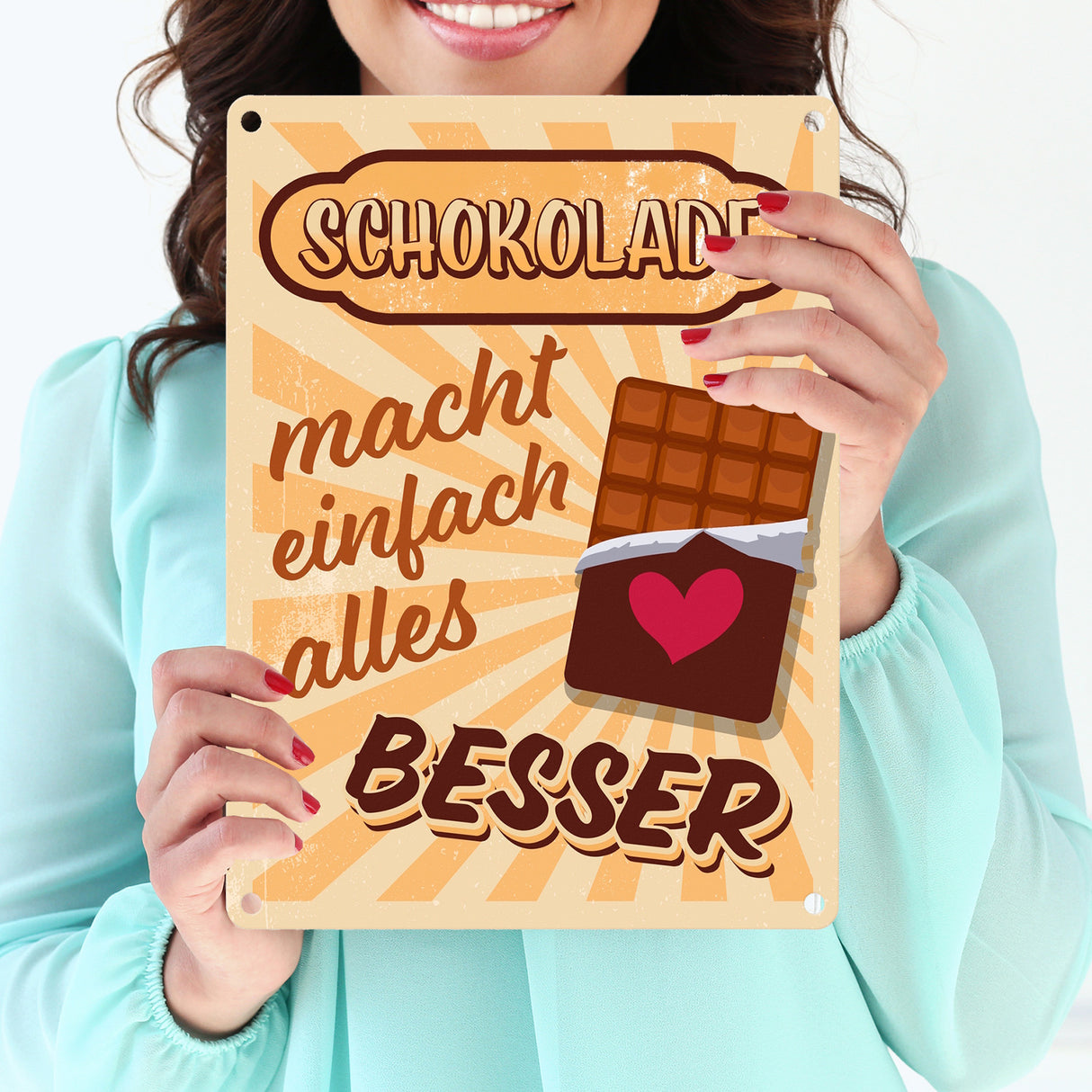 Schokolade macht einfach alles besser Metallschild im coolen Retro Look