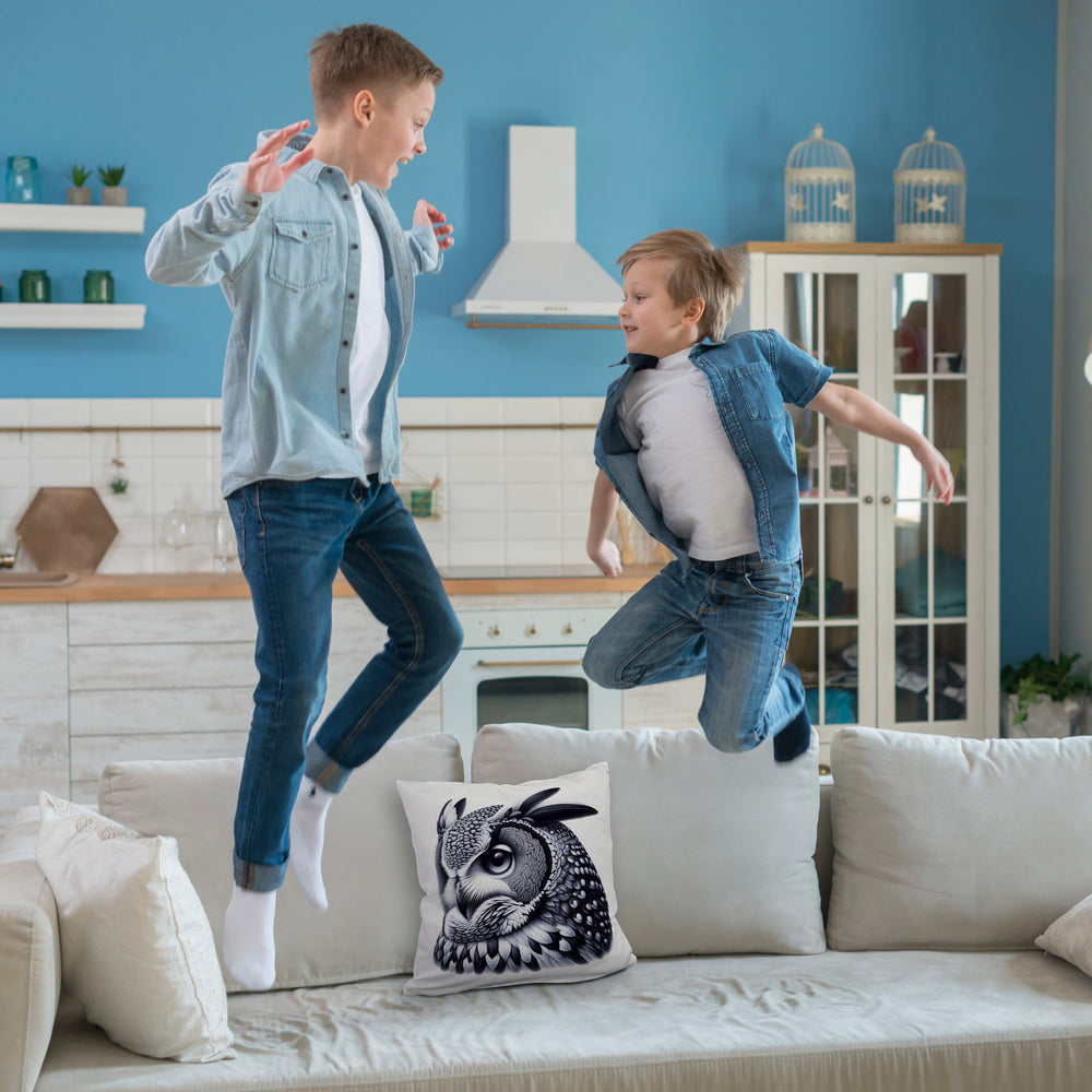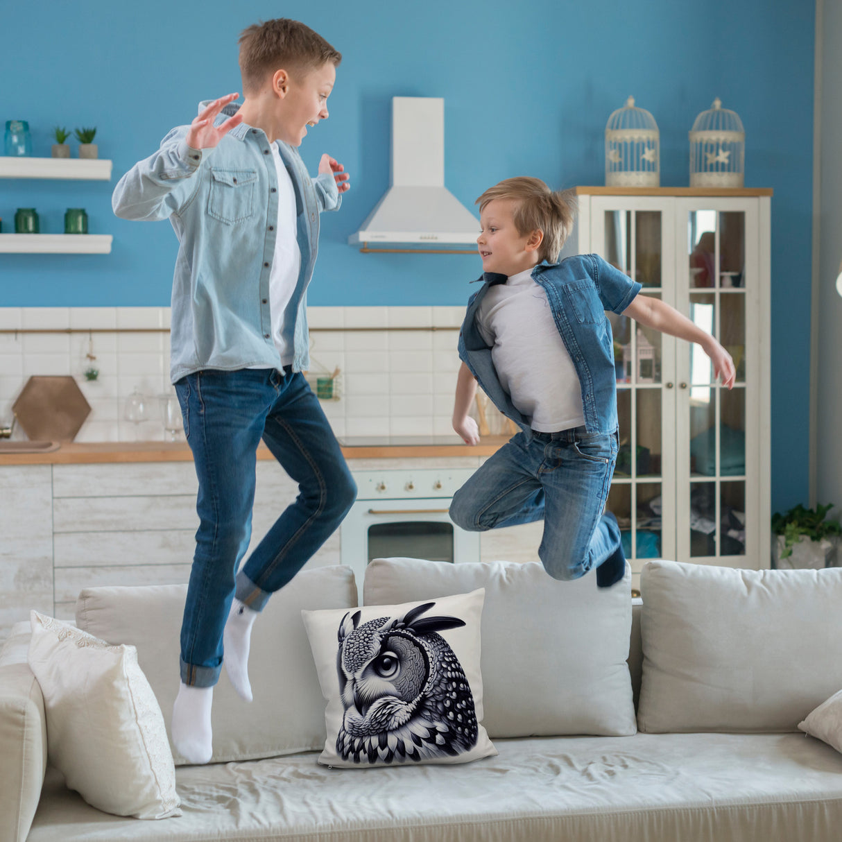 - Erlebe die Mystik der Nacht direkt auf Deinem Sofa mit dem schwarzen Eule Kissen! Dein neues flauschiges Gefährte sitzt geduldig auf seinem Baumast, umgeben von Mond und Sternen. Perfekt für nächtliche Waldgeflüster und kuschelige Dämmerungsmomente.