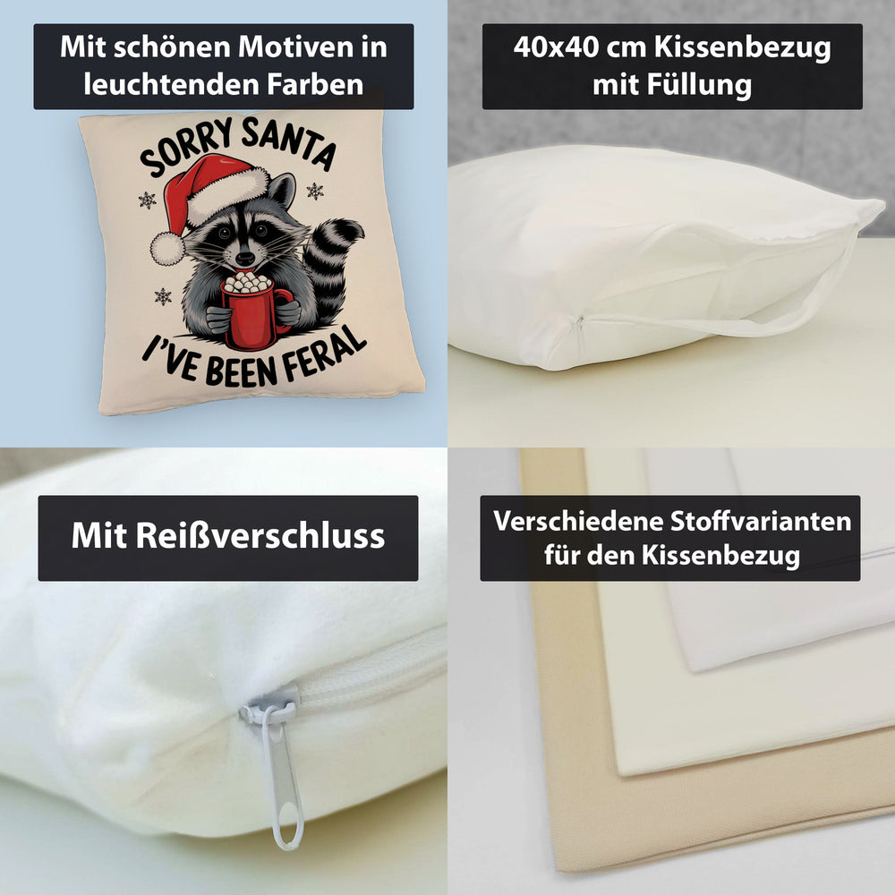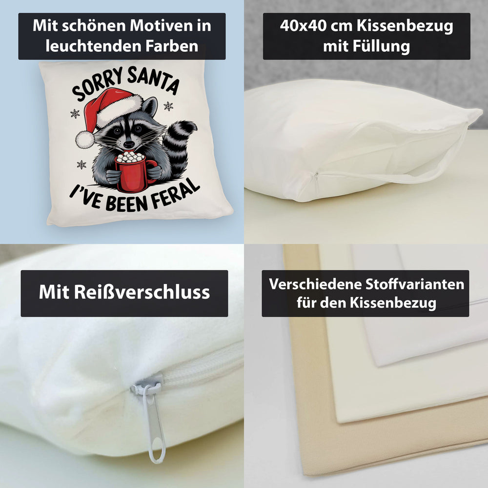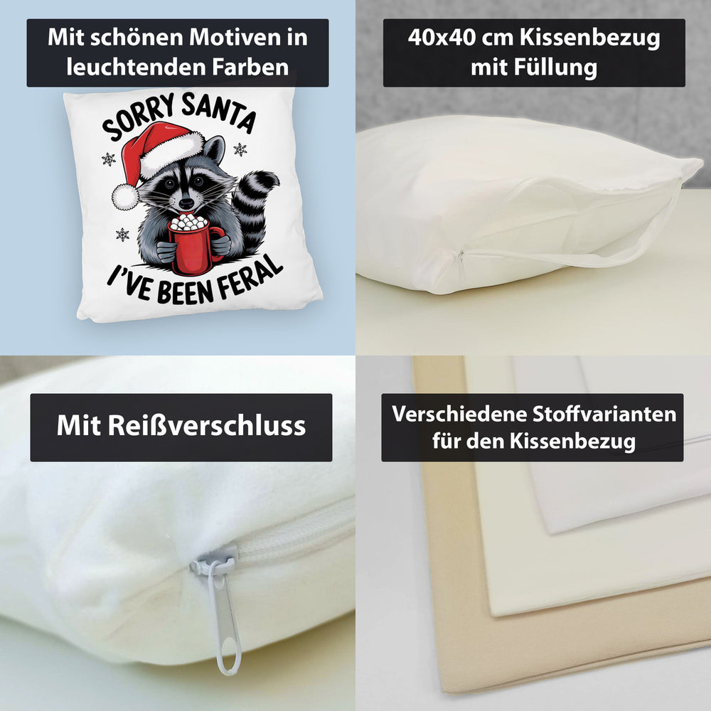 - 1x Weihnachts-Waschbär - Sorry Santa Kissen in der gewählten Ausführung