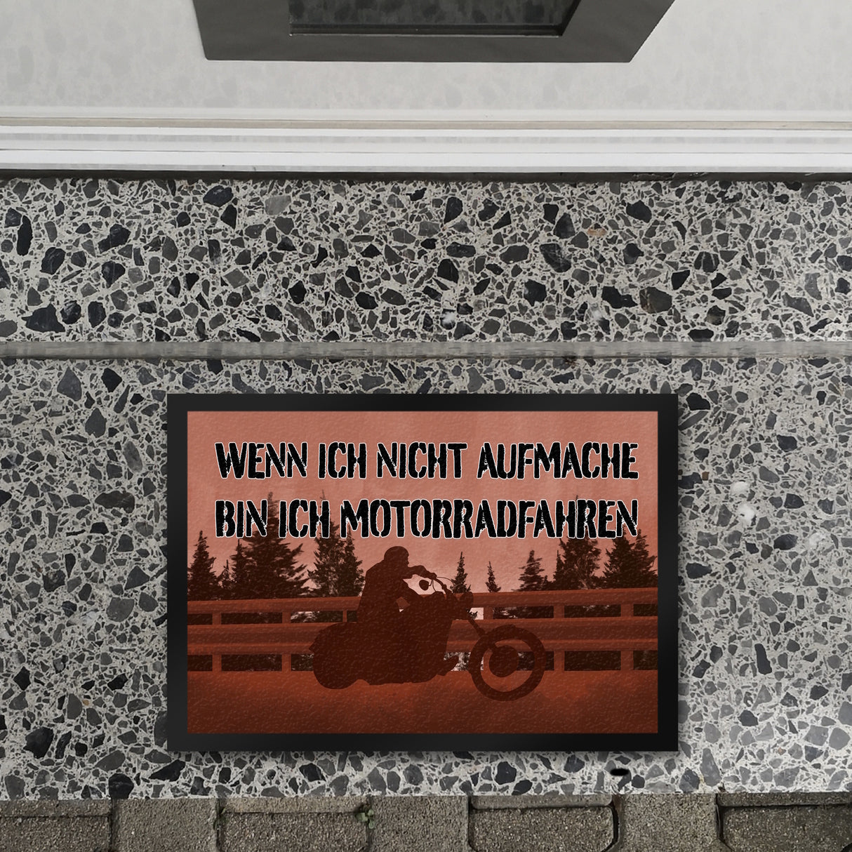 - 1x Wenn ich nicht aufmache bin ich Motorradfahren Fußmatte mit Chopper in der gewählten Größe