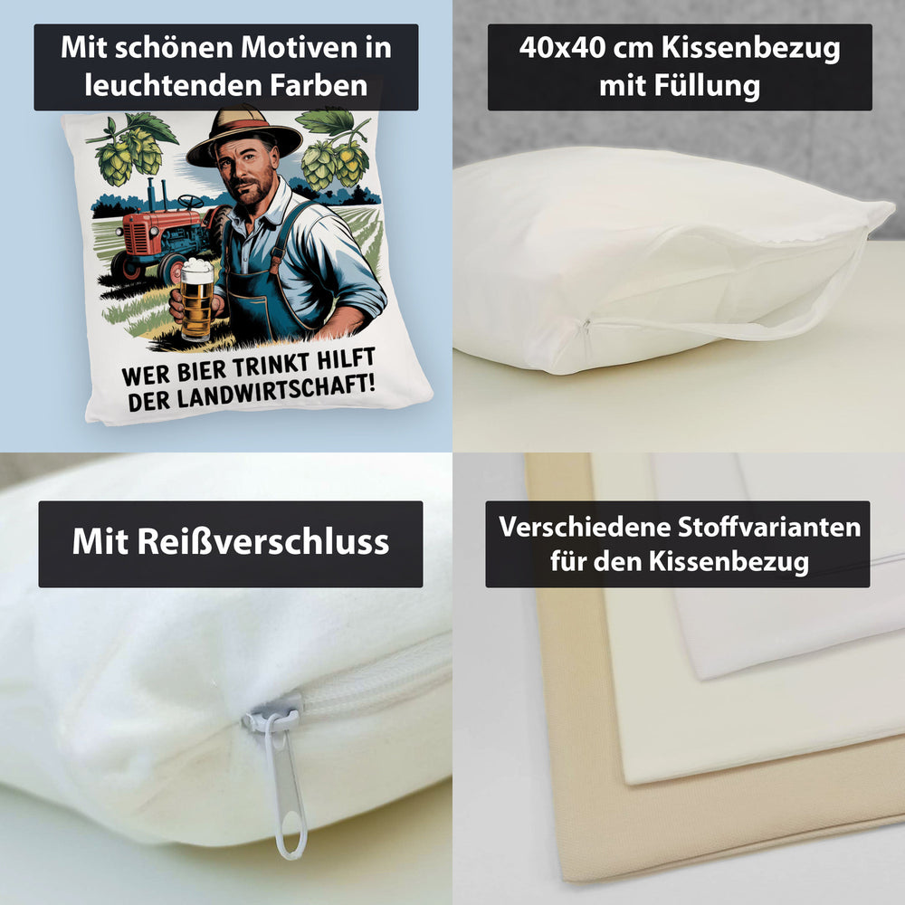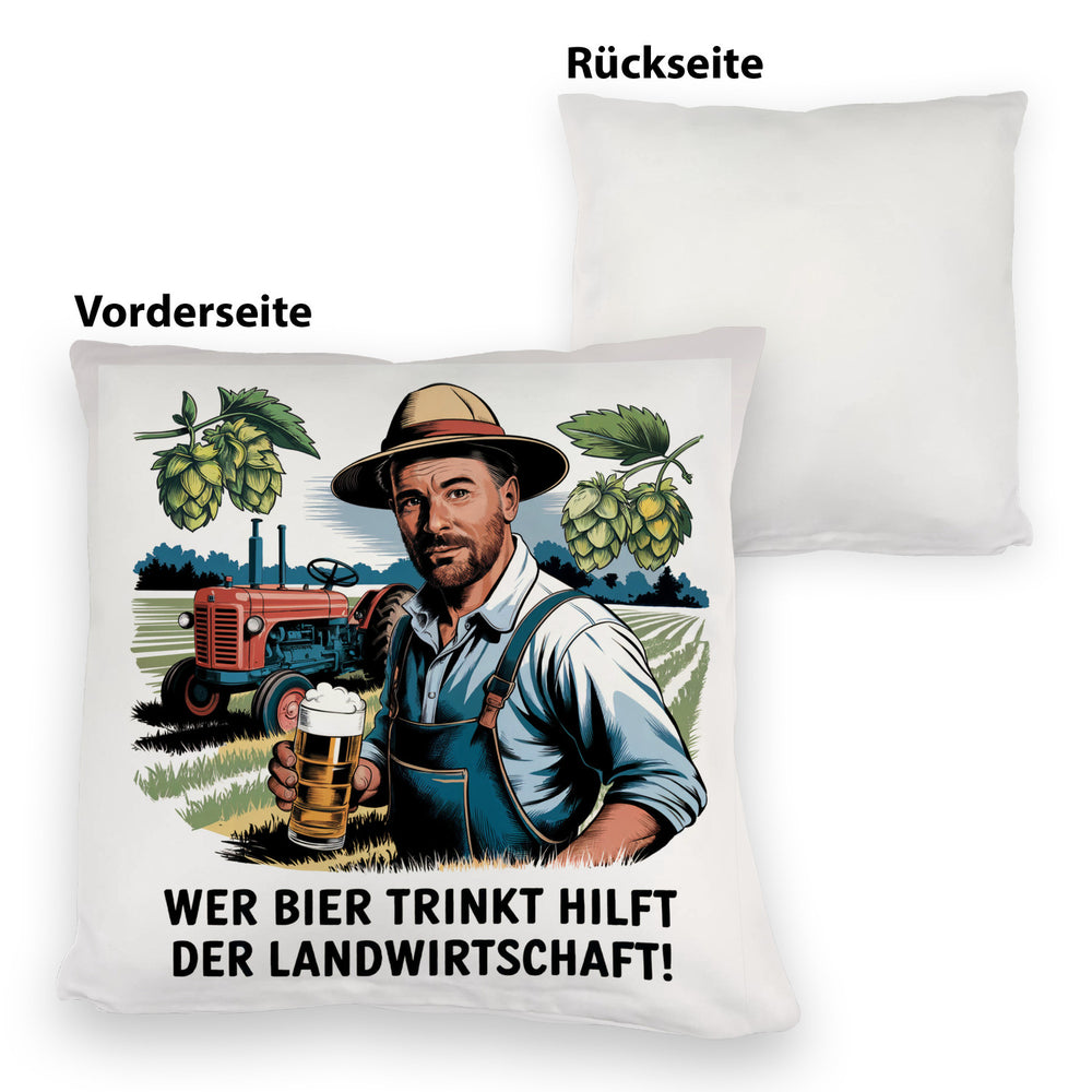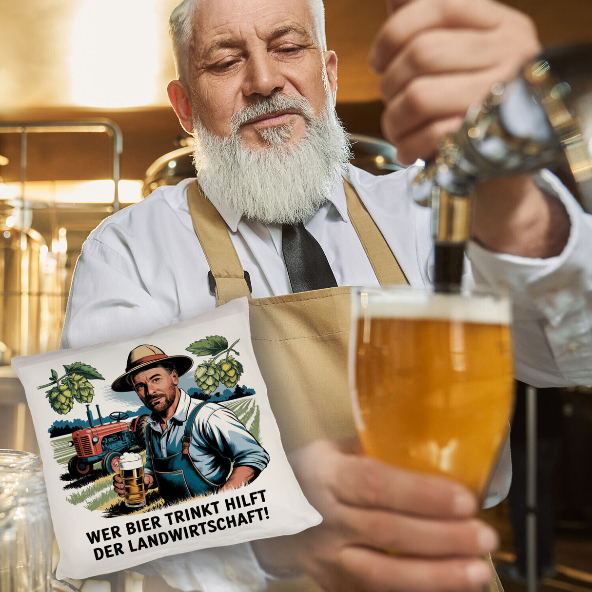 - 1x Wer Bier trinkt hilft der Landwirtschaft Kissen in der gewählten Ausführung