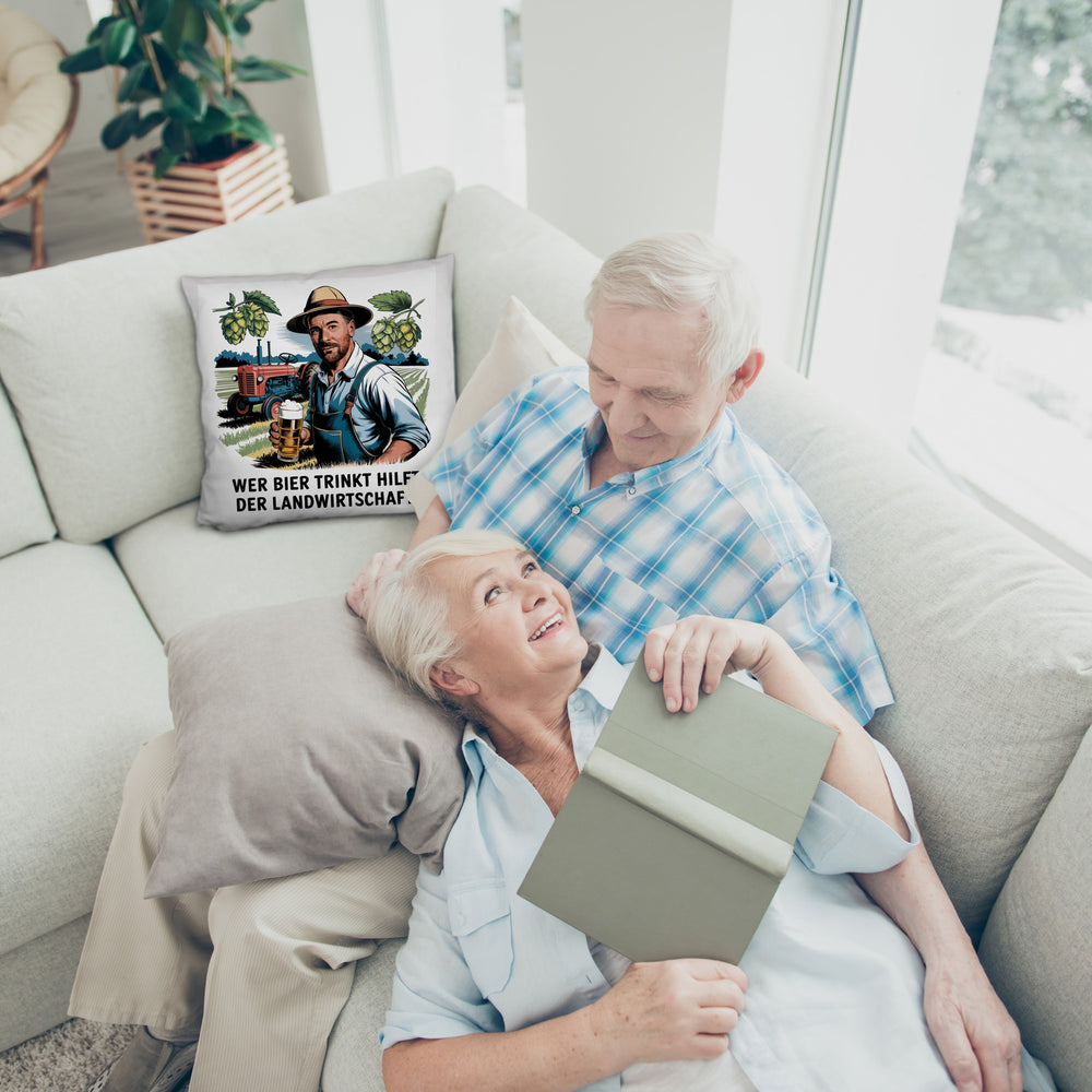 Wer Bier trinkt hilft der Landwirtschaft Kissen