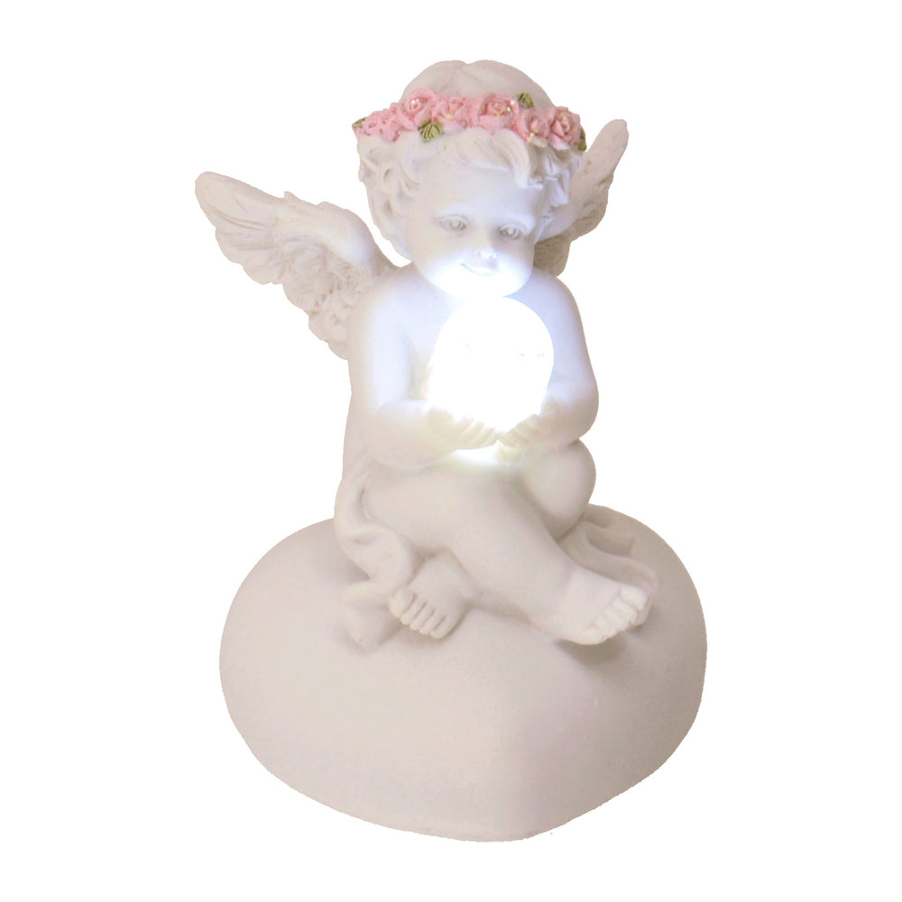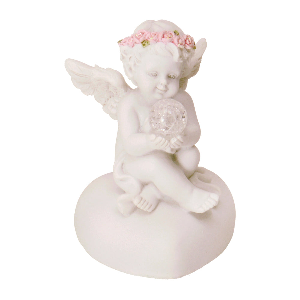 Engel Dekofigur mit LED-Kugel und Rosenblütenkranz