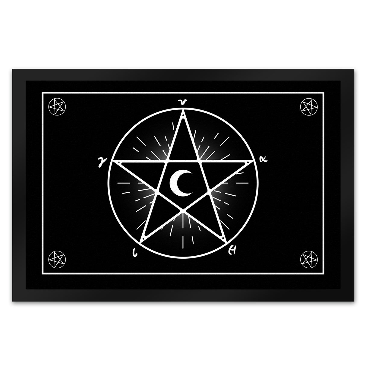 - 1x Fußmatte mit Pentagramm im coolen Halloween Design -Weiß in der gewählten Größe