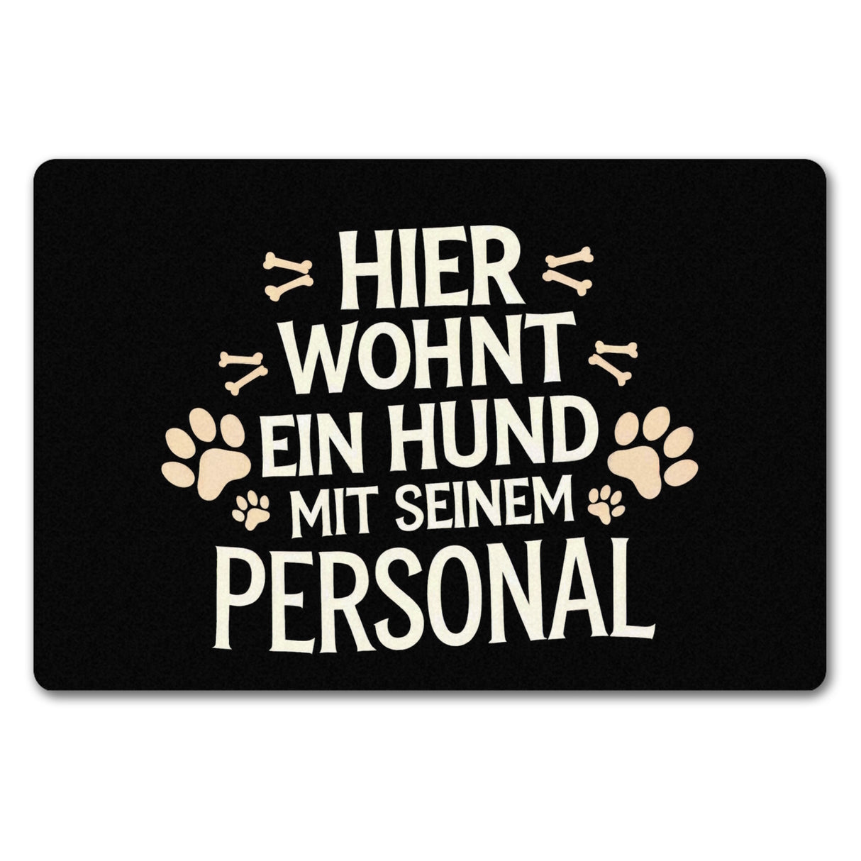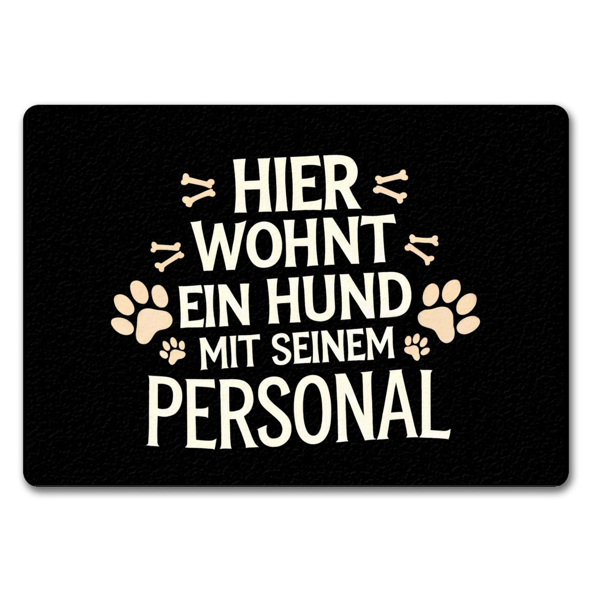 - 1x Hier wohnt ein Hund mit seinem Perosnal Fußmatte in 35x50 cm ohne Rand in der gewählten Größe