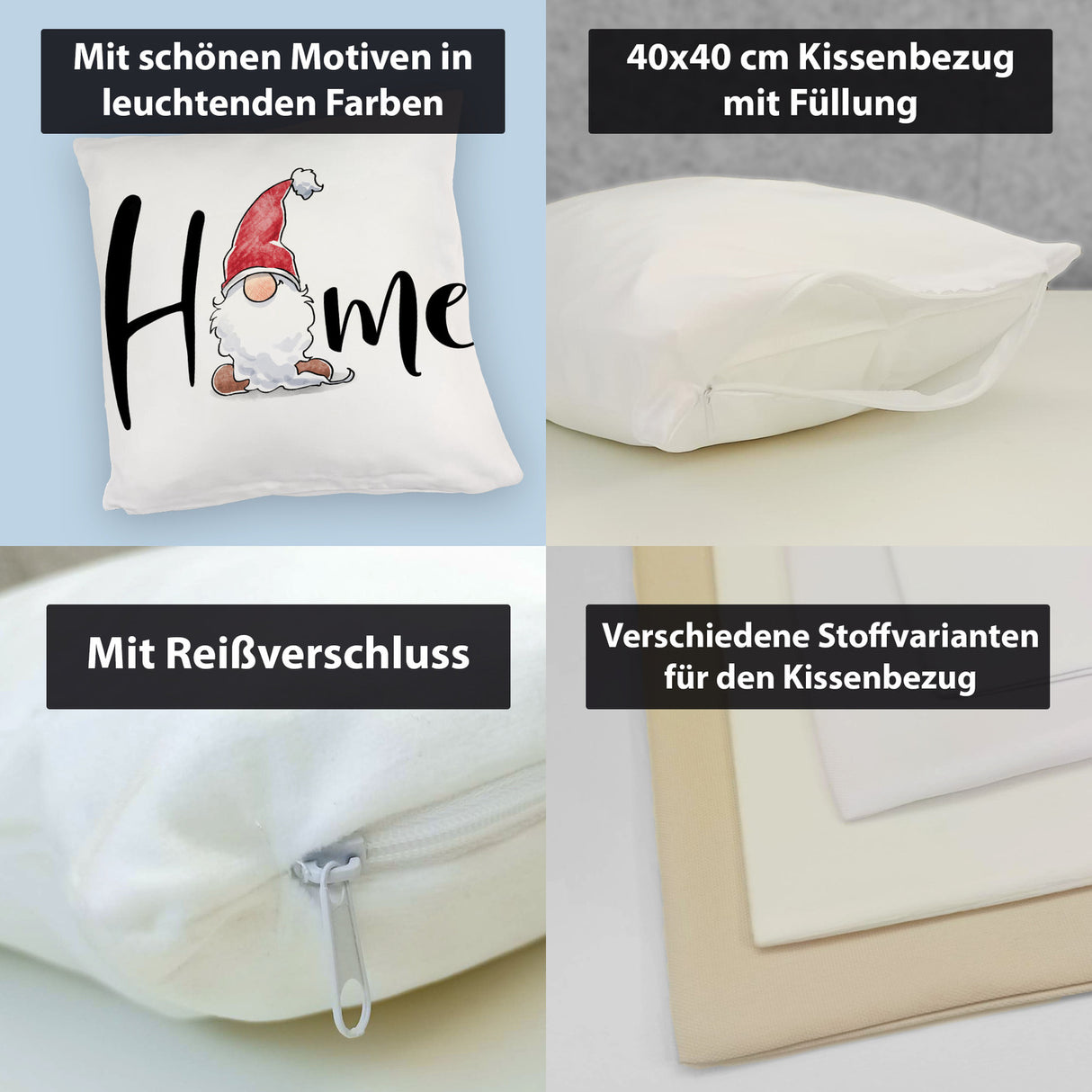 • 1x Home Kissen mit bärtigem Wichtel in der gewählten Ausführung