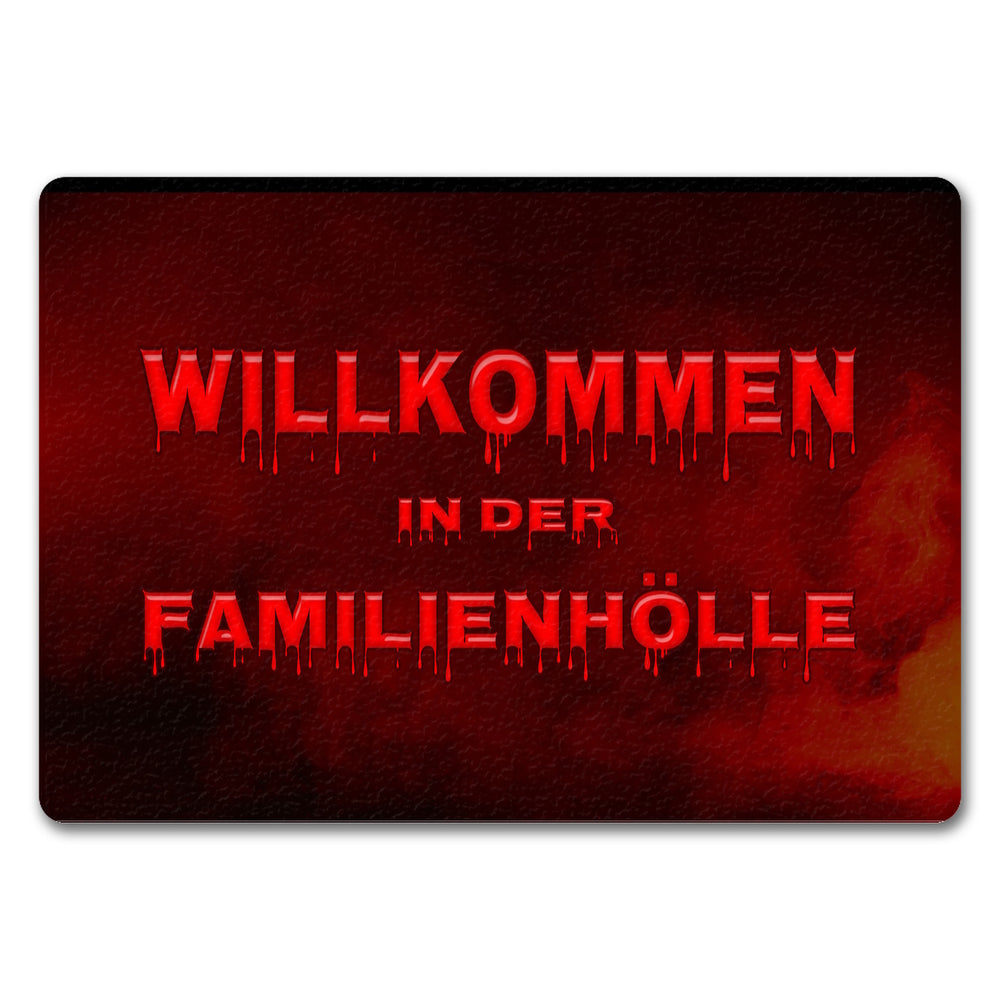 - Mit dieser Fußmatte kann man seinen Besuchern gleich mal das Fürchten lehren. Willkommen in der Familienhölle steht da in blutigen Lettern. Wer dennoch mutig ist und Eintritt wird schon sehen was er davon hat. Ein cooles Geschenk für Horrorfans und Menschen die gerne etwas krass auf Andere wirken.