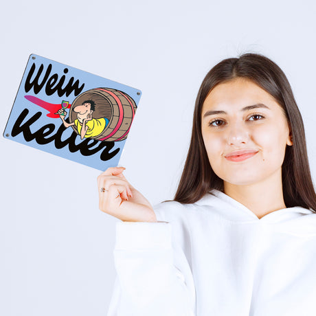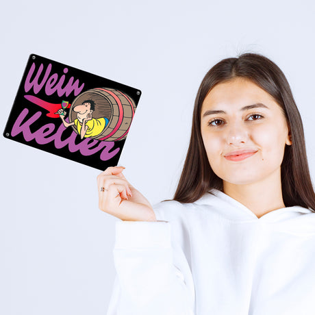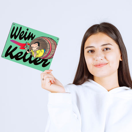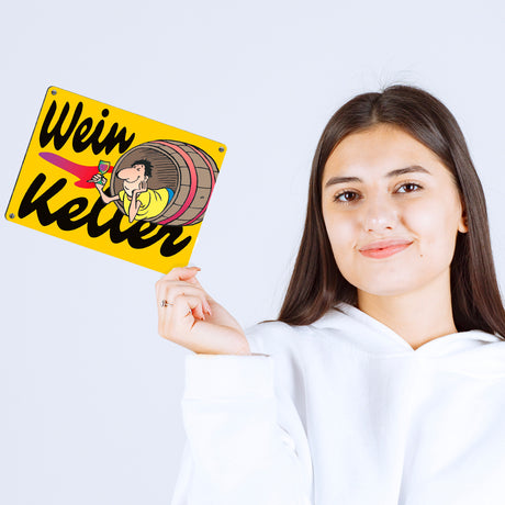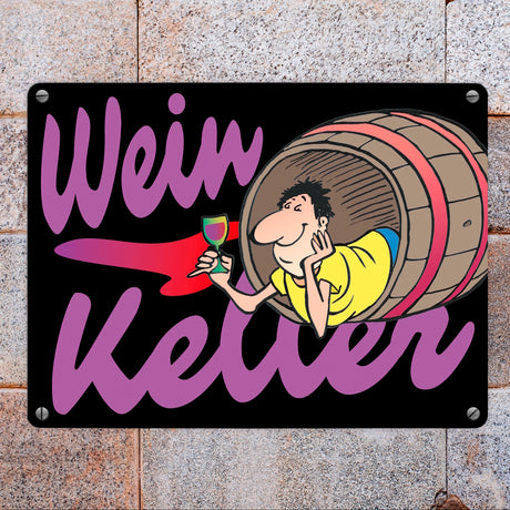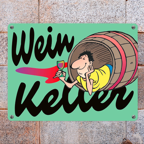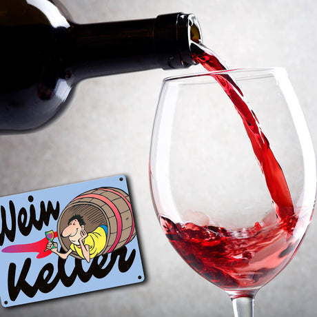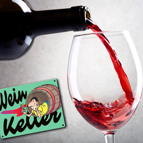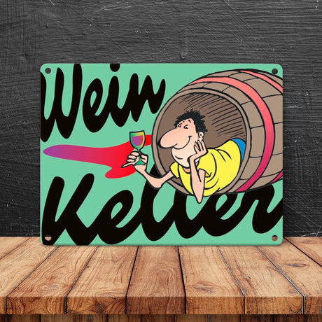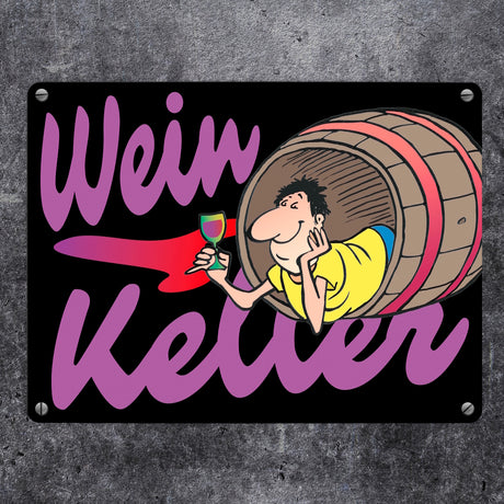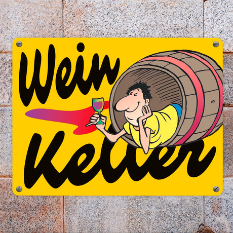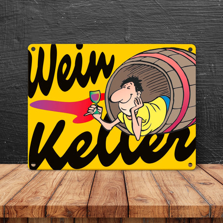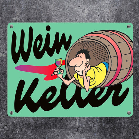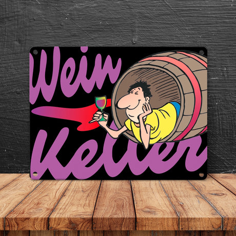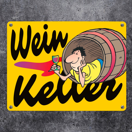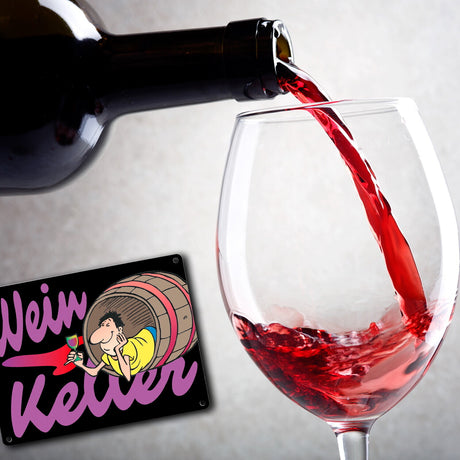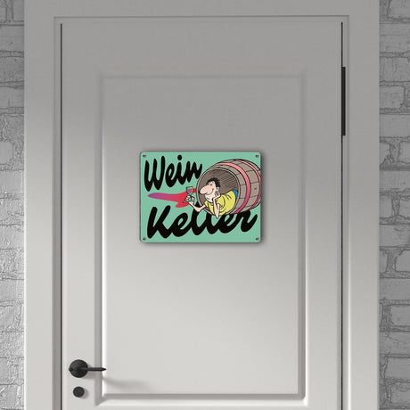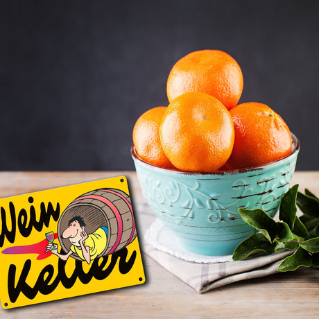 €20,95Grundpreis /Nicht verfügbarBegrenzter Vorrat (3 Einheiten)Weinkeller Metallschild in orange mit Weinfass Motiv