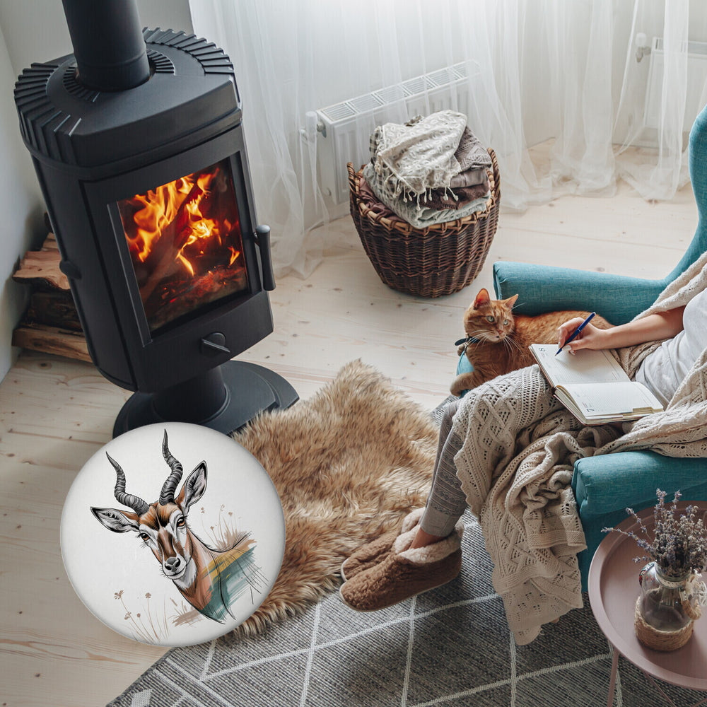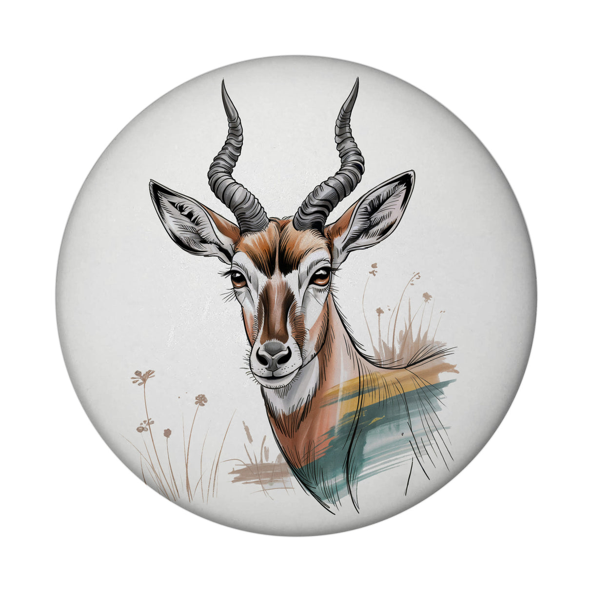 - Bewundern Sie die Anmut und Schönheit der Antilope auf diesem runden Magneten! Das Motiv zeigt eine anmutige Antilope, die durch weiche Bleistiftstriche und zarte Kohleumrisse inszeniert wird, mit rosa schimmerndem Schimmer auf ihrer Schnauze, ergänzt durch türkis- und bernsteinfarbene Akzente. Ein wahres Kunstwerk für Ihren Kühlschrank!