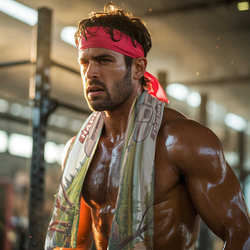 - Dieses Eishandtuch zeigt einen charmanten Vintage-Wohnwagen in einer grünen Oase! Mit sanften Hügeln, dichten Bäumen und einem gewundenen Schotterweg, strahlt es die Gelassenheit des Campinglebens aus. Zwei Holzstühle und das freudige "Happy Campers!"-Schild runden das idyllische Motiv ab. Perfekt designt für Natur- und Campingliebhaber!