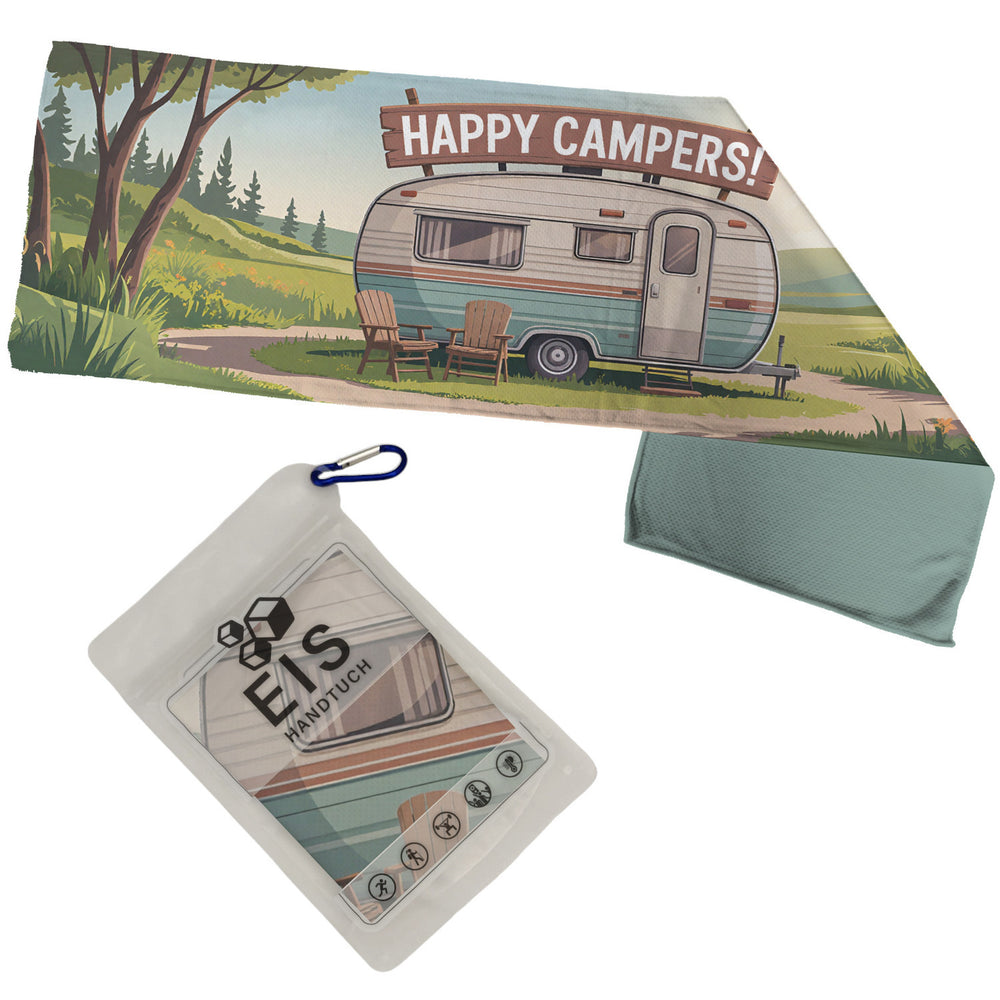 - Hol dir das Happy Campers Eishandtuch – mit Liebe designt und hochwertig bedruckt! Perfekt für alle, die Campingfeeling und Abkühlung schätzen. Zögere nicht, nimm das kühle Abenteuer in den Alltag und erlebe Qualität, die Freude bringt!