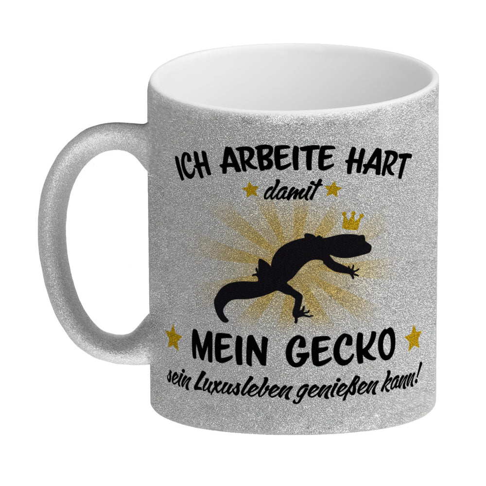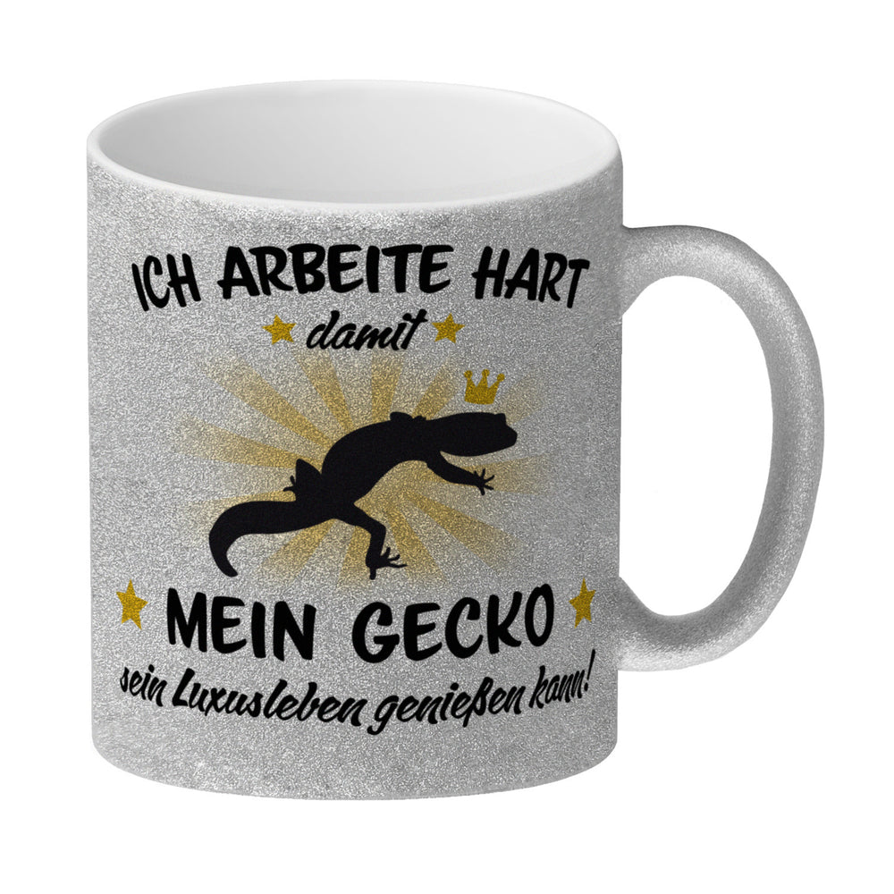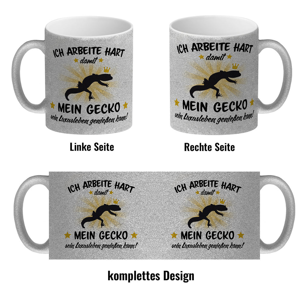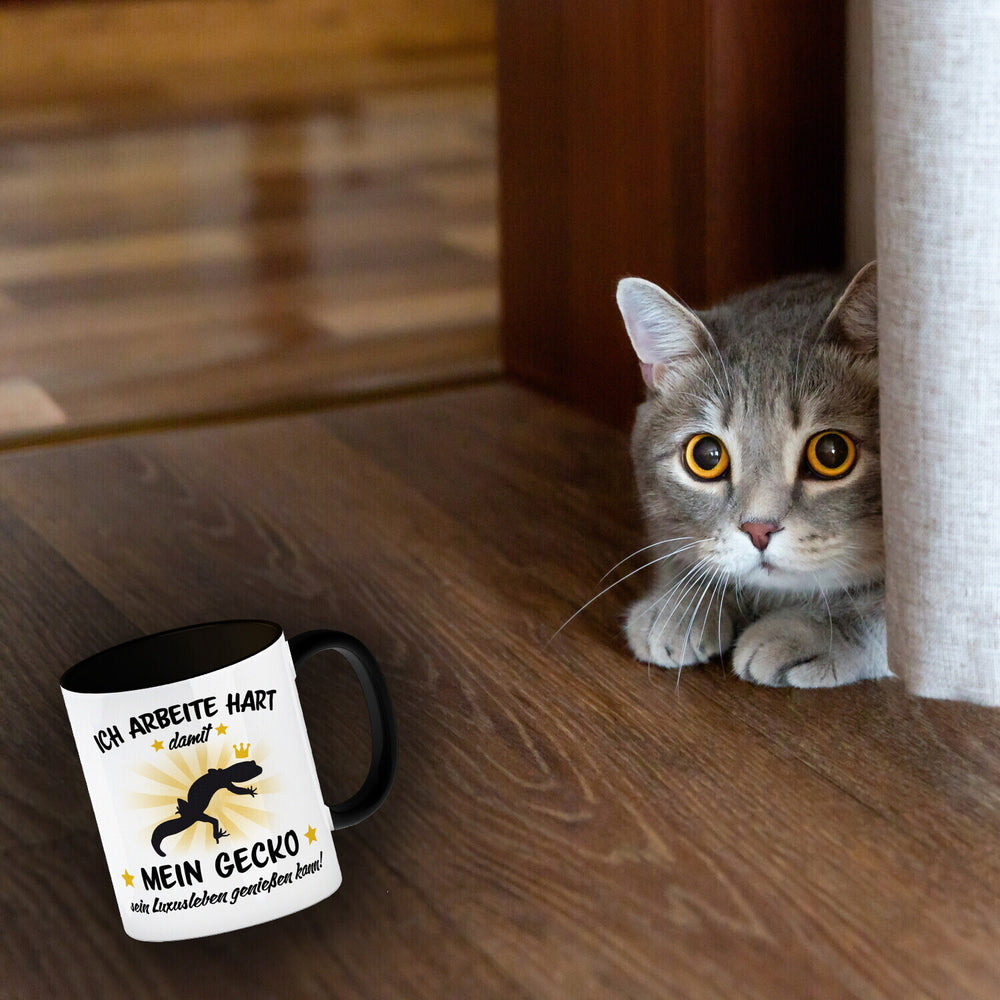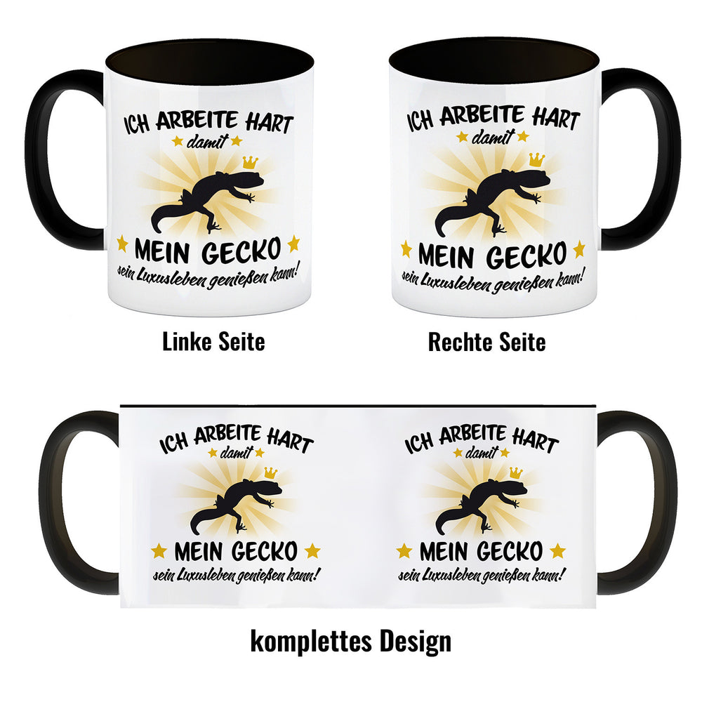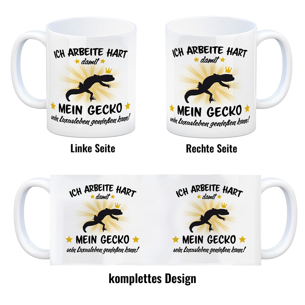 - 1x Ich arbeite hart für das Luxusleben meines Geckos Haustier Kaffeebecher in der gewählten Ausführung