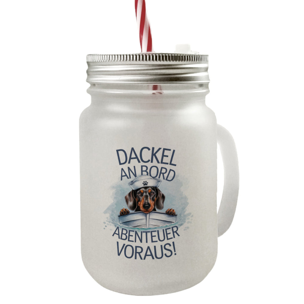 Matrosen Dackel im Boot Trinkglas mit Bambusdeckel - Abenteuer voraus