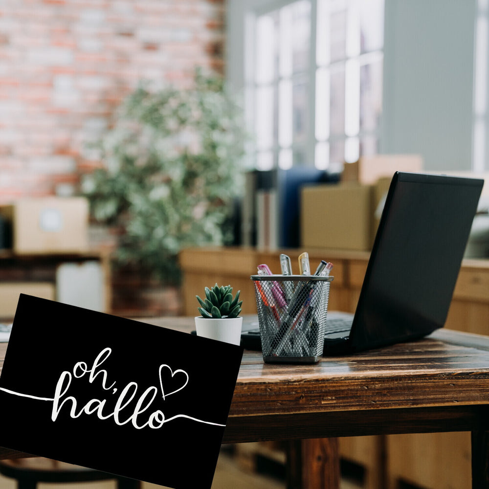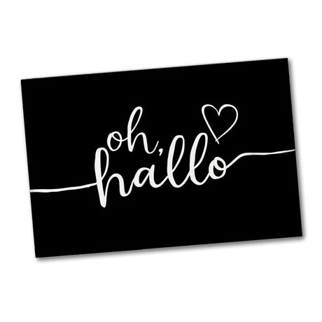 - Dieser stilvolle Magnet besticht durch sein elegantes Design. Auf einem schwarzen Hintergrund erstrahlt der weiße, geschwungene Schriftzug 'Oh, hallo', begleitet von einer charmanten Herz-Kritzelei. Der rechteckige Magnet kombiniert Minimalismus mit einer persönlichen Note, perfekt für jedes moderne Zuhause oder Büro.