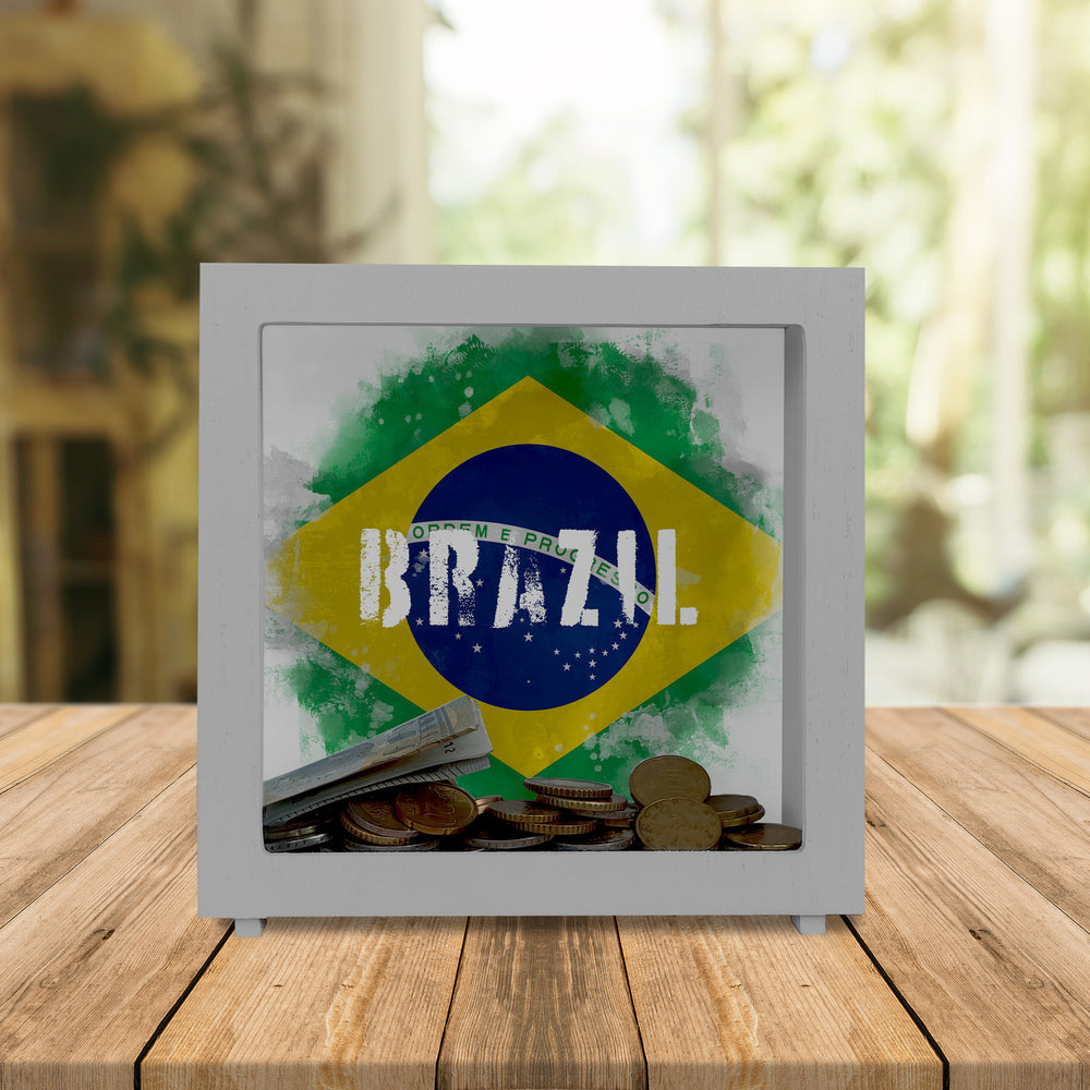 - 1x Spardose mit Brasilien-Flagge im Used Look - Sparschwein für Urlauber in der gewählten Ausführung