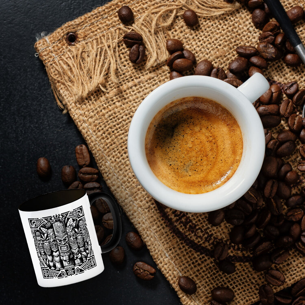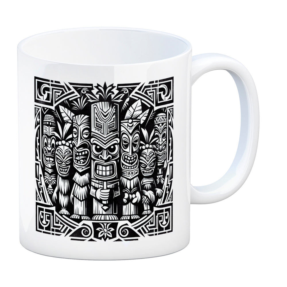 - "Schlürf deinen Morgenkaffee mal anders – mit dem Tiki Figuren Kaffeebecher! Dieser Becher verwandelt jede Kaffeepause in ein polynesisches Ritual. Mit traditionellen Mustern und ernsten Tiki-Gesichtern, die dich anstarren, so intensiv, dass sogar der Kaffee vor Ehrfurcht zittert. Und ja, sie sind auch ein bisschen grimmig – vermutlich kein Morgenmensch... äh, Morgenstatue?"