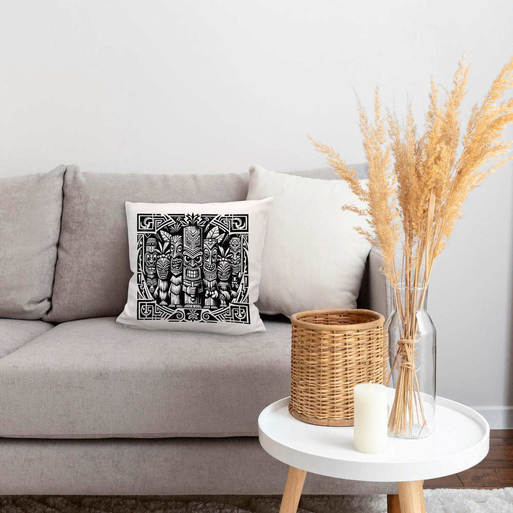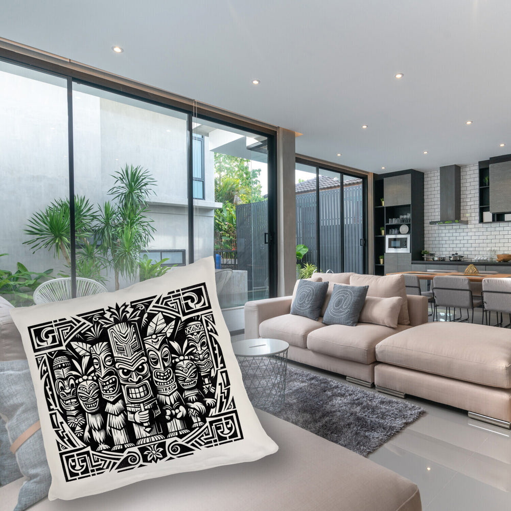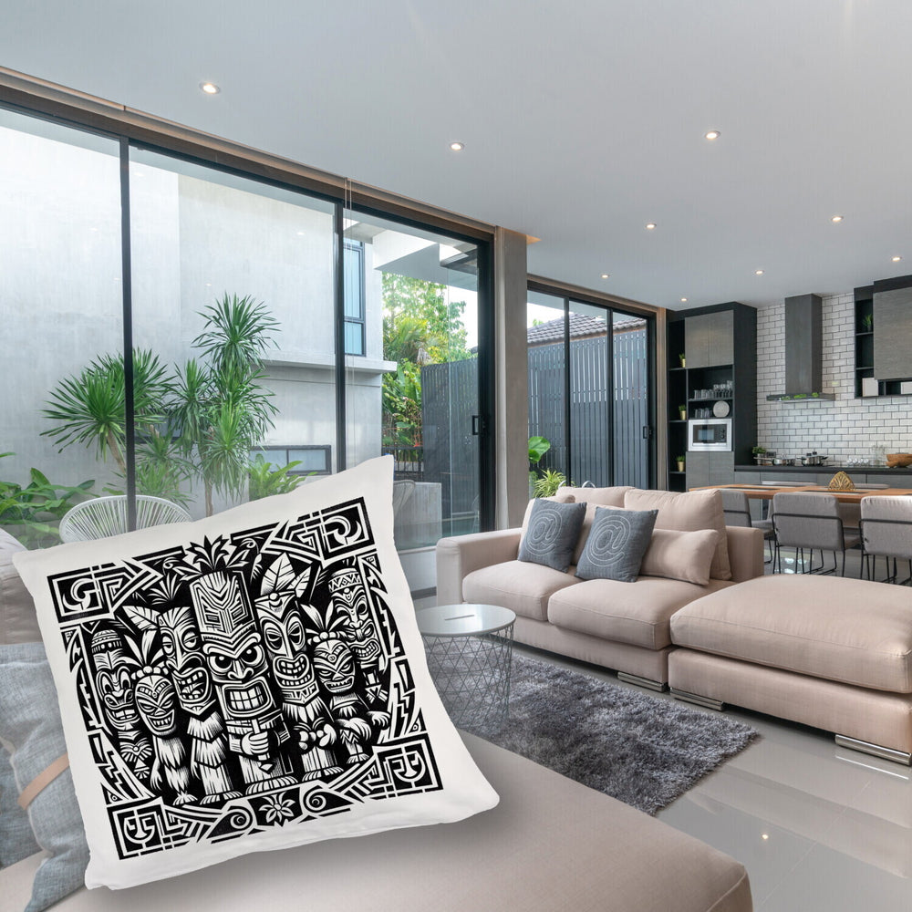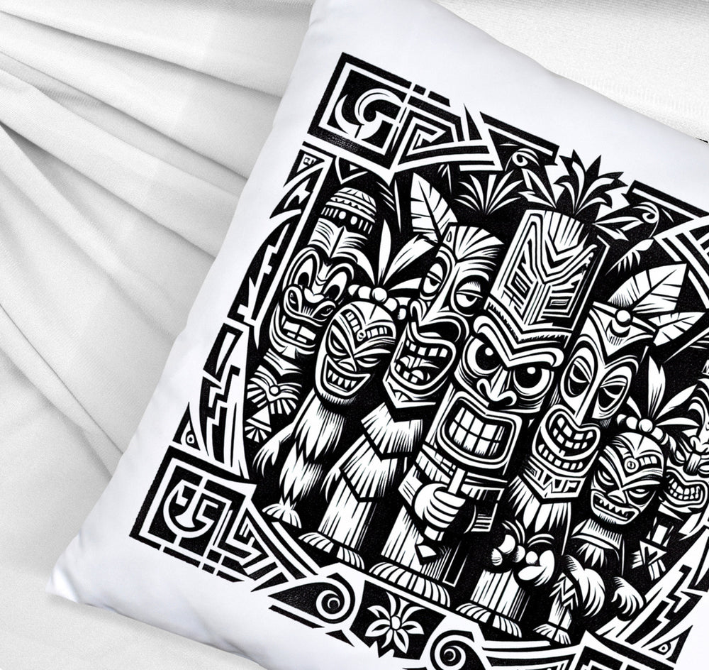 - Erwecke die Götter Polynesiens auf Deinem Sofa! Dieses Kissen mit Tiki Figuren Motiv lässt Deine Couch wie einen Ozeanischen Traum erscheinen. Details, die selbst den hölzernen Statuen Konkurrenz machen, werden Deinen Gästen ins Auge stechen - wer braucht schon Museen?