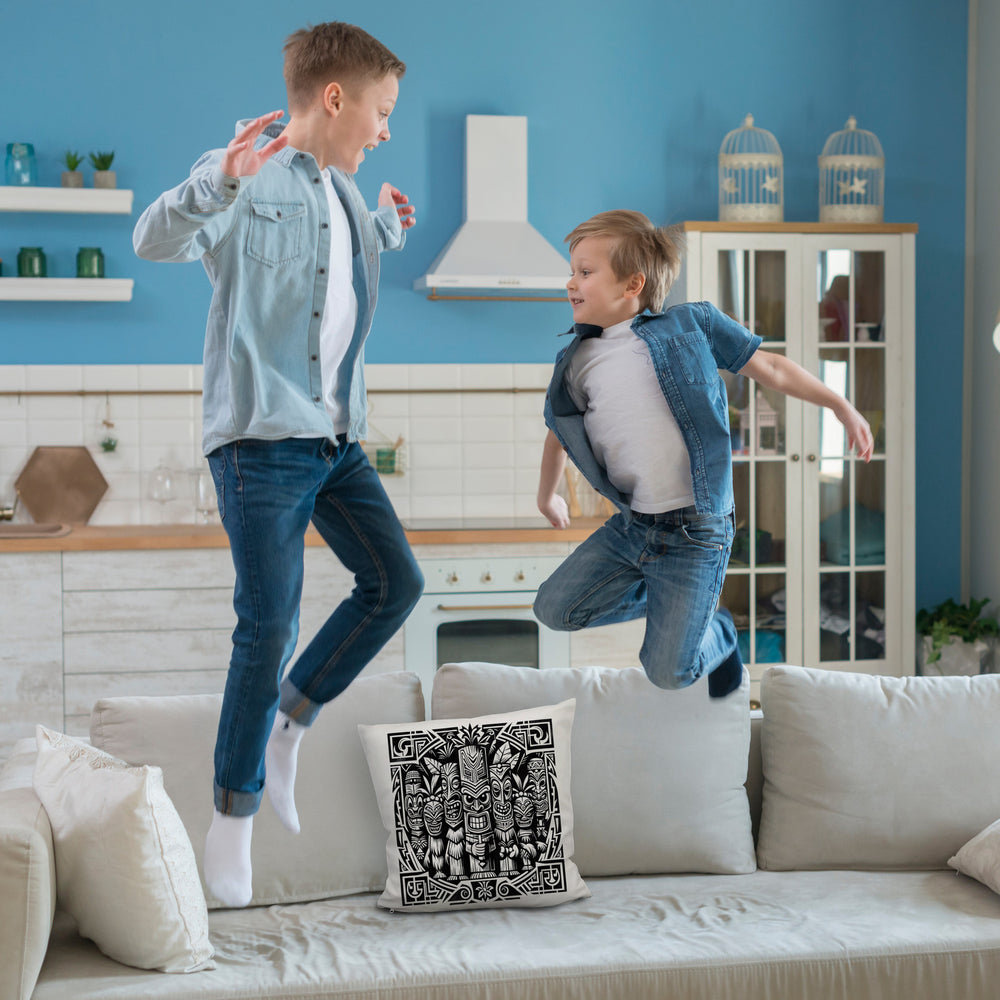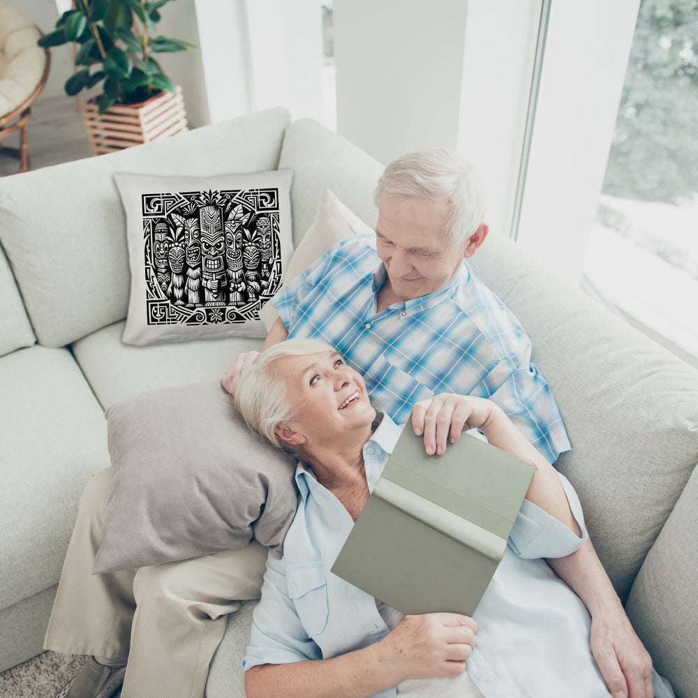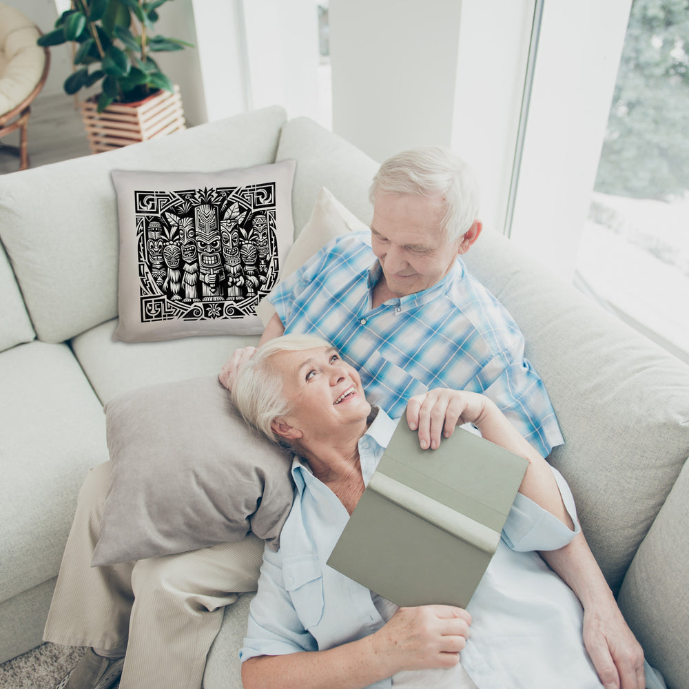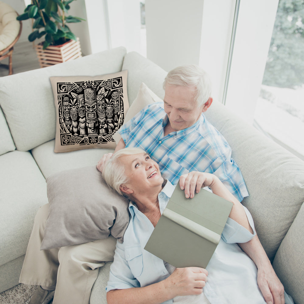 - Erwecke die Götter Polynesiens auf Deinem Sofa! Dieses Kissen mit Tiki Figuren Motiv lässt Deine Couch wie einen Ozeanischen Traum erscheinen. Details, die selbst den hölzernen Statuen Konkurrenz machen, werden Deinen Gästen ins Auge stechen - wer braucht schon Museen?