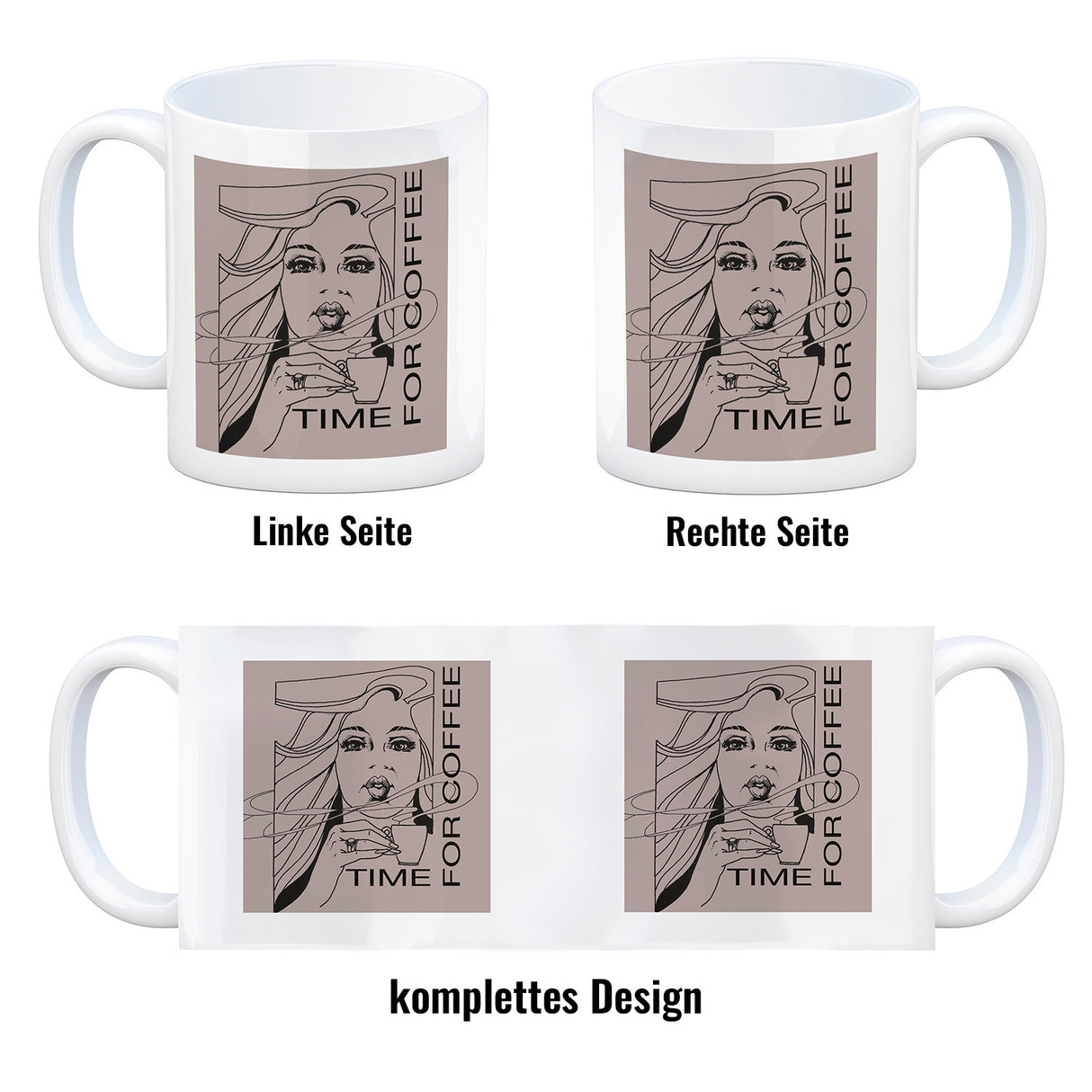 - 1x time for coffee Kaffeebecher mit Spruch in der gewählten Ausführung