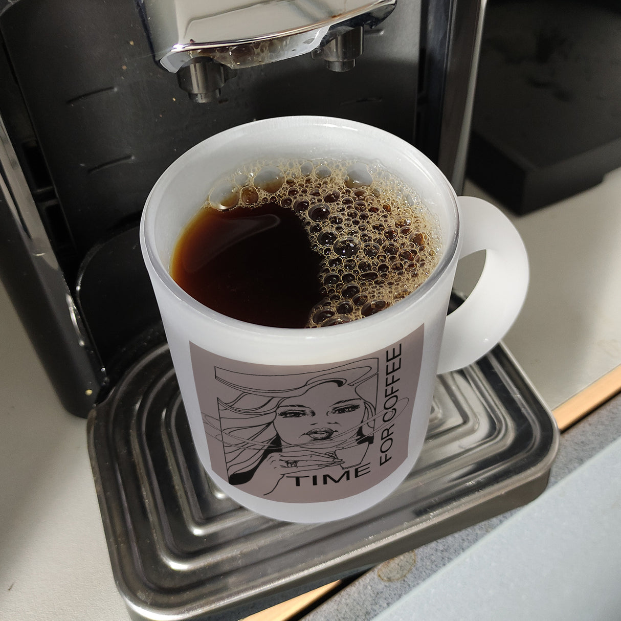 - Starte Deinen Morgen mit einem Schmunzeln und dem Kaffeebecher, der mehr kann als nur heiß halten! 'Time for Coffee' prangt stolz auf dem coolen Braun des Bechers, während die genüsslich schlürfende Frau Dir zeigt, wie Kaffeegenuss wirklich geht - auch unterwegs!