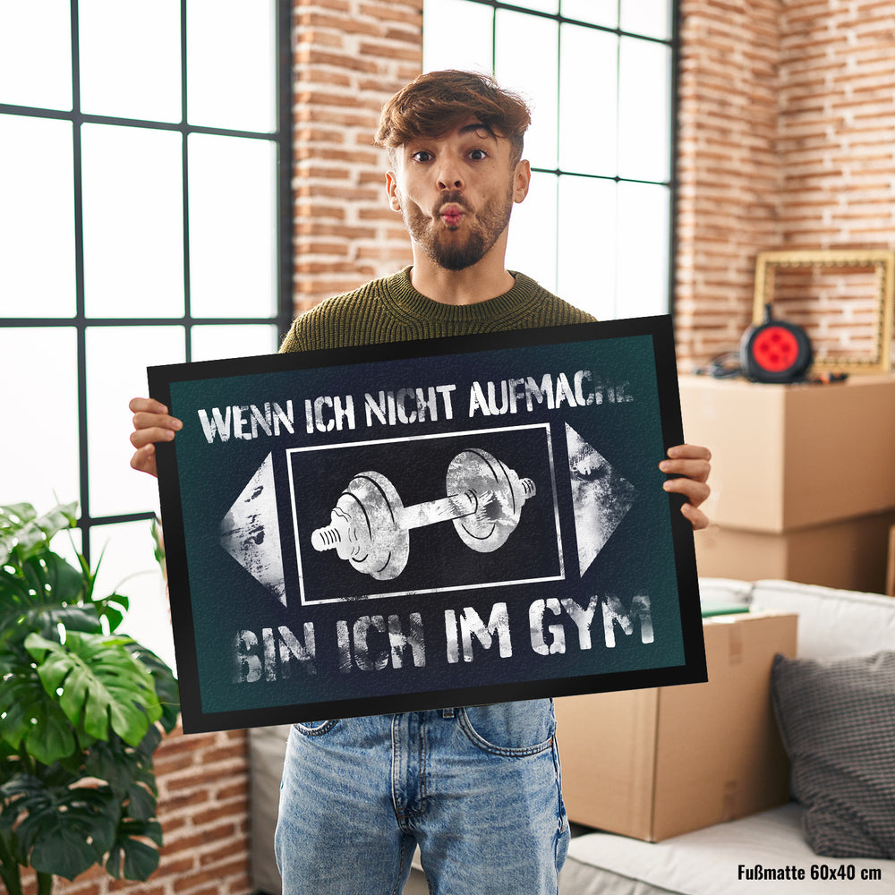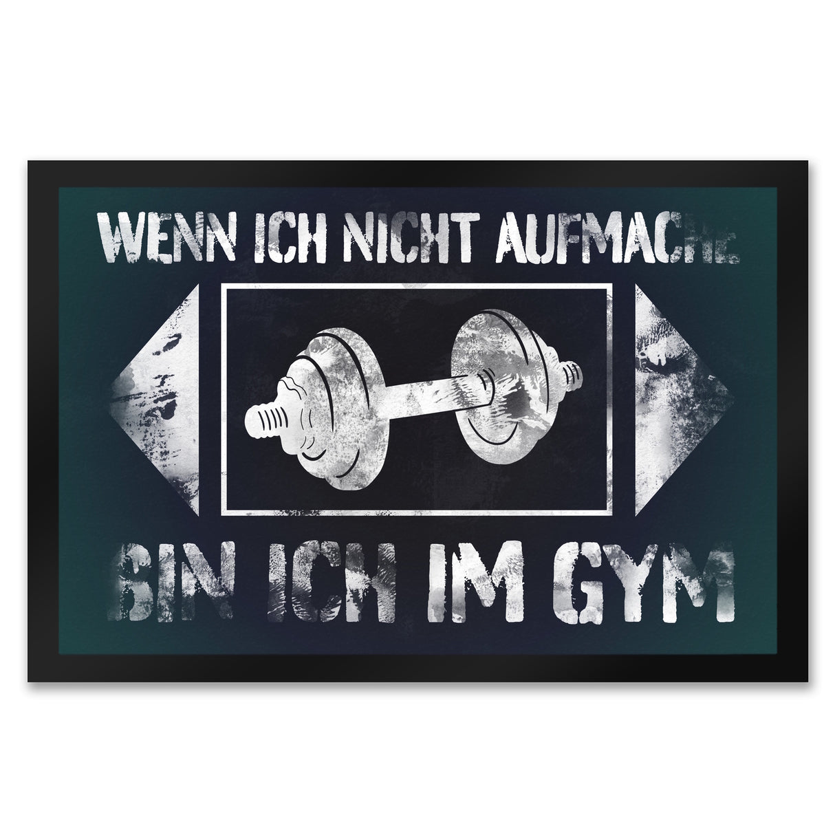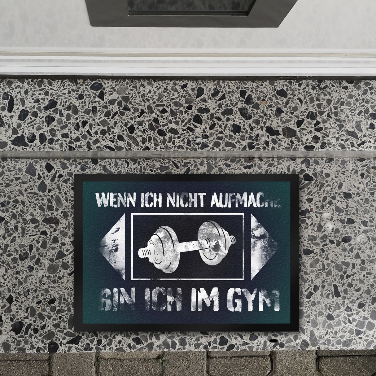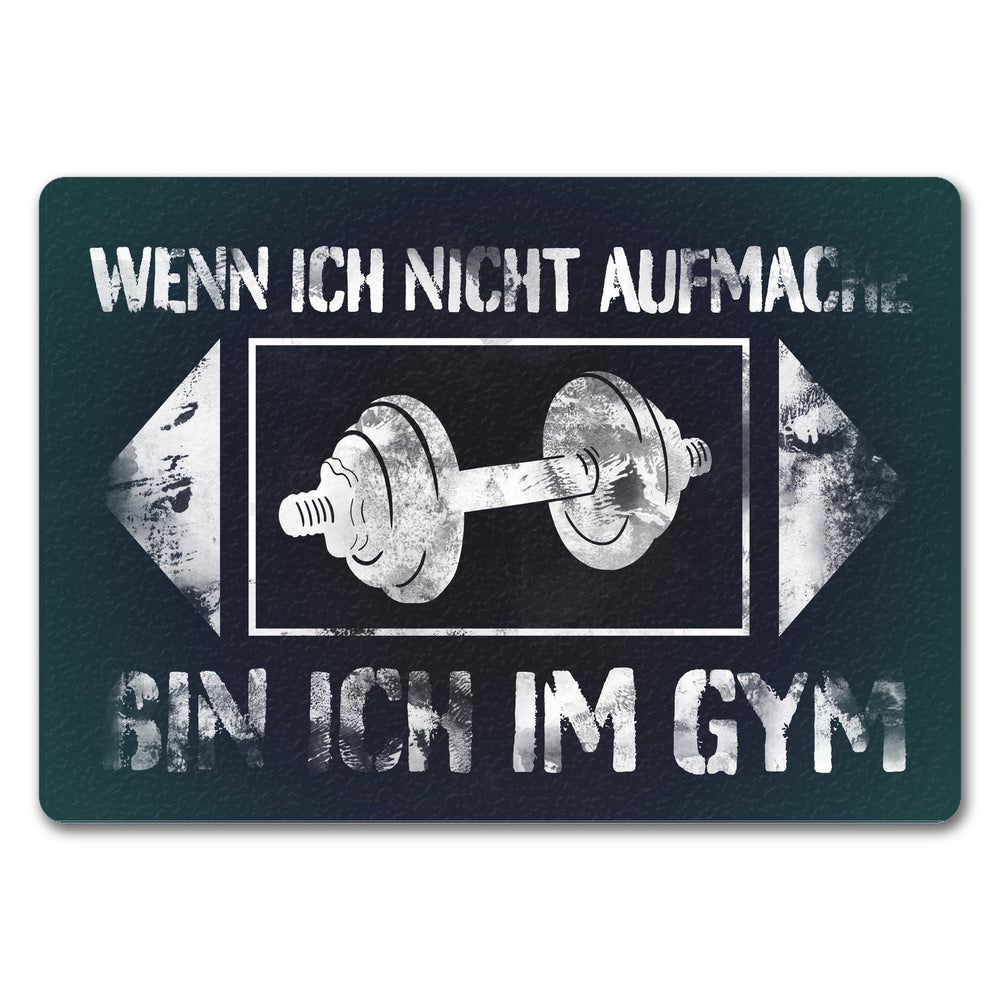 - 1x Wenn ich nicht aufmache bin ich im Gym Fußmatte mit Hantel in der gewählten Größe