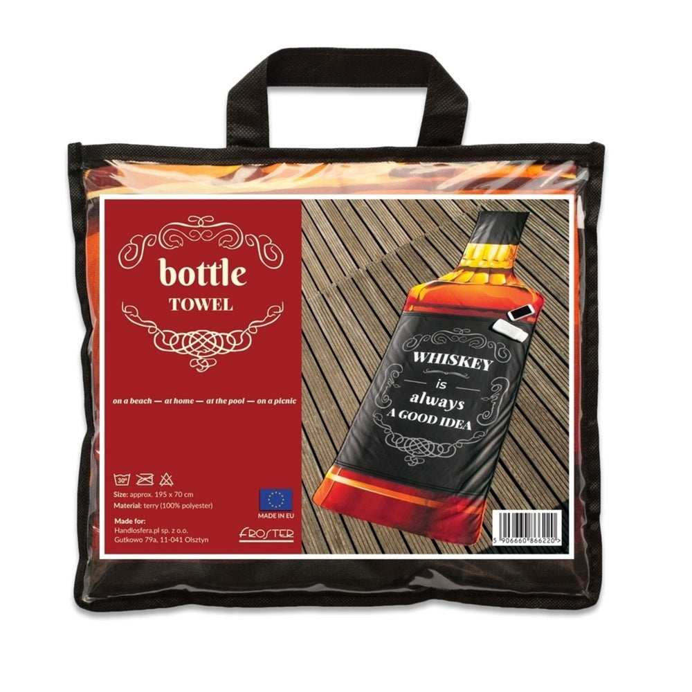 - Lieferumfang: 1x Whiskey-Flasche Badetuch.