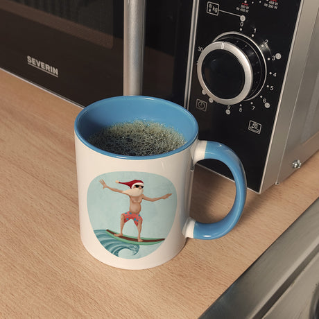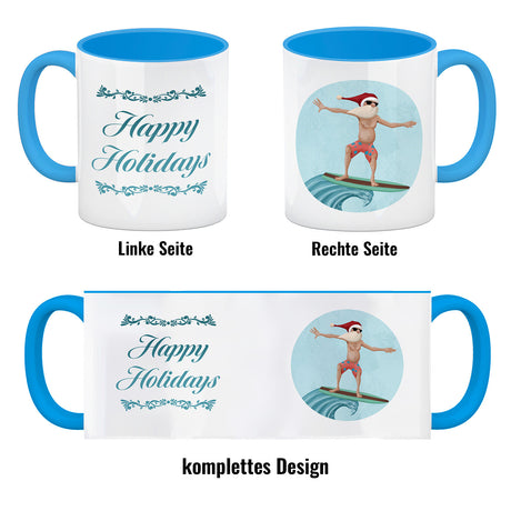 €14,95Grundpreis /Nicht verfügbarAuf LagerHappy Holidays witziger Kaffeebecher mit Weihnachtsmann auf Surfbrett