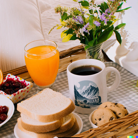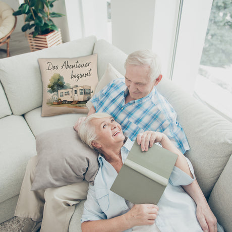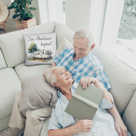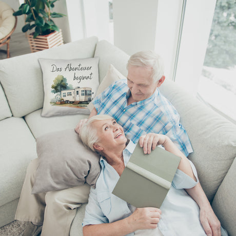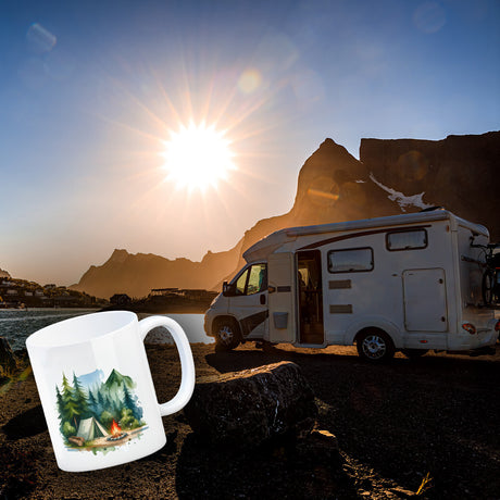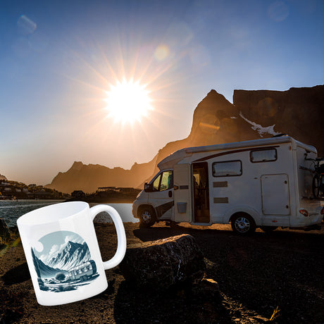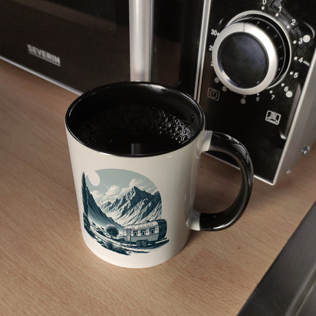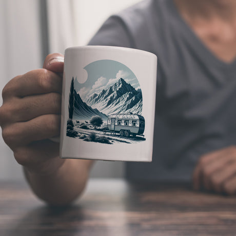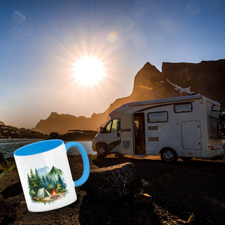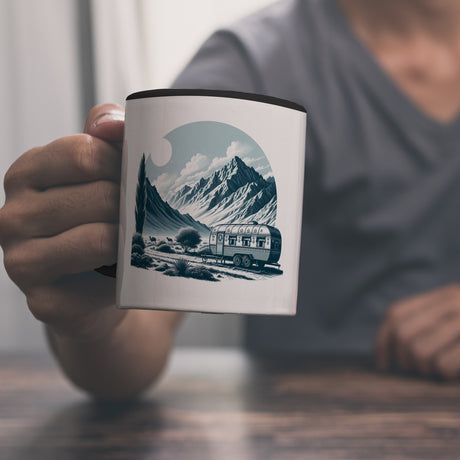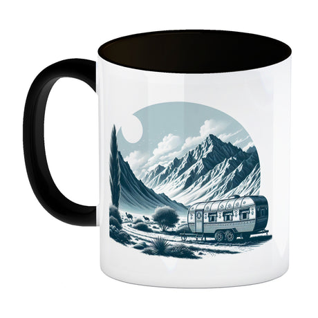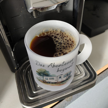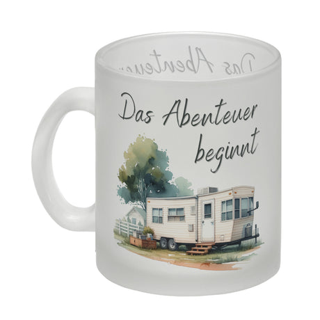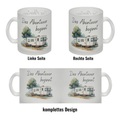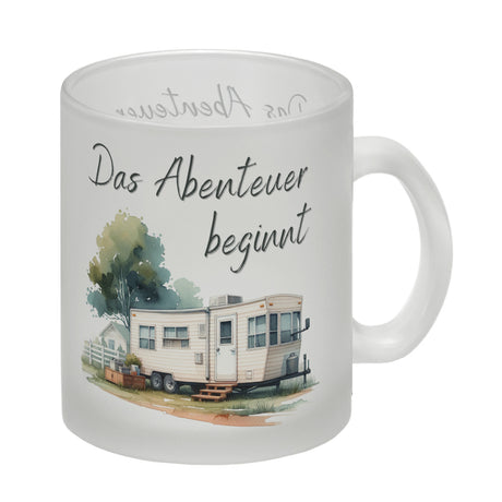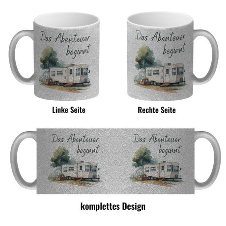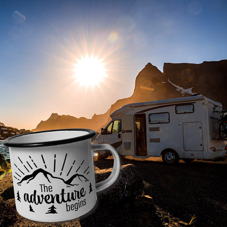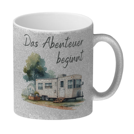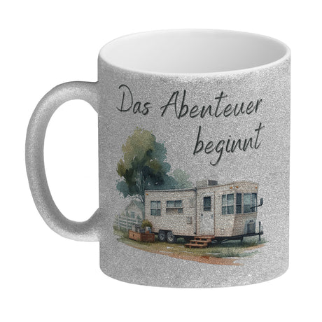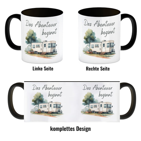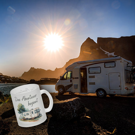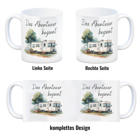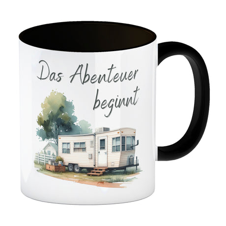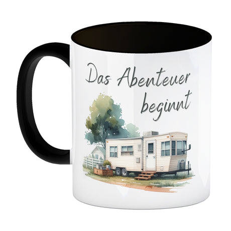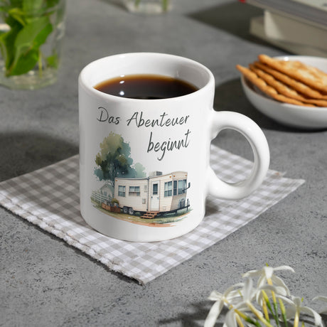 Wohnwagen Kaffeebecher mit Spruch Das Abenteuer beginnt