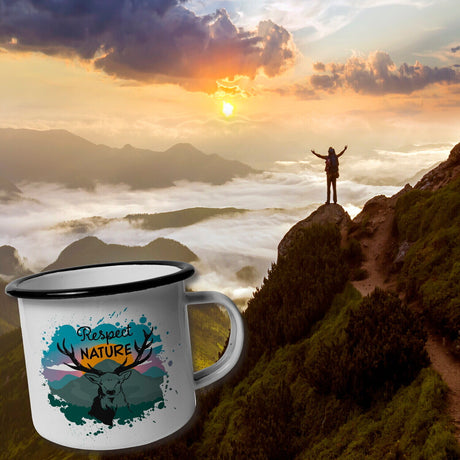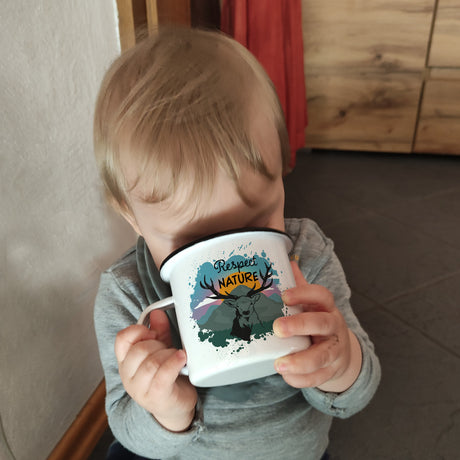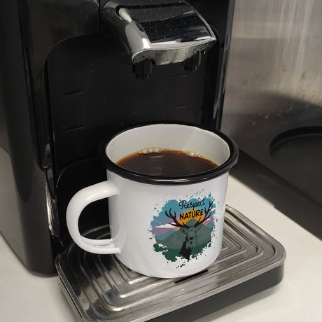 €14,95Grundpreis /Nicht verfügbarSehr geringer Bestand (1 Einheit)Respect Nature Emailletasse mit Hirschkopf Abbildung