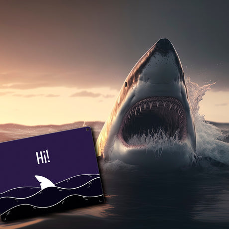 Ab €16,95Grundpreis /Nicht verfügbarAuf LagerHi! Lustiges Hai Metallschild mit Haifischflosse und Meeresmotiv