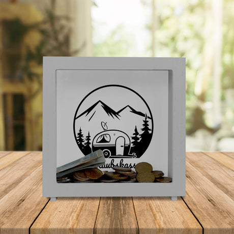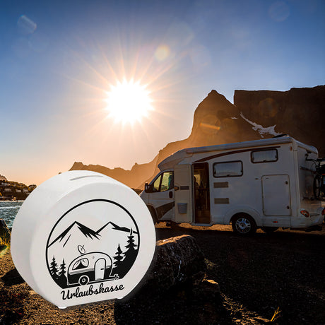 €13,95Grundpreis /Nicht verfügbarAuf LagerUrlaubskasse Spardose -weiß mit Wohnwagen - Camping im Wald