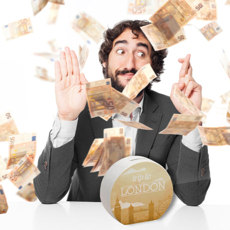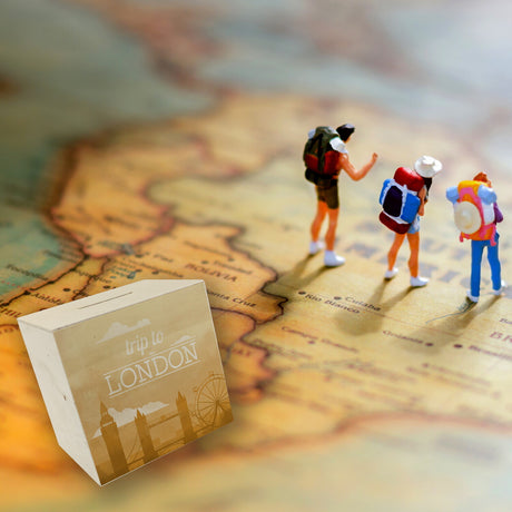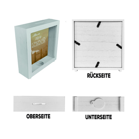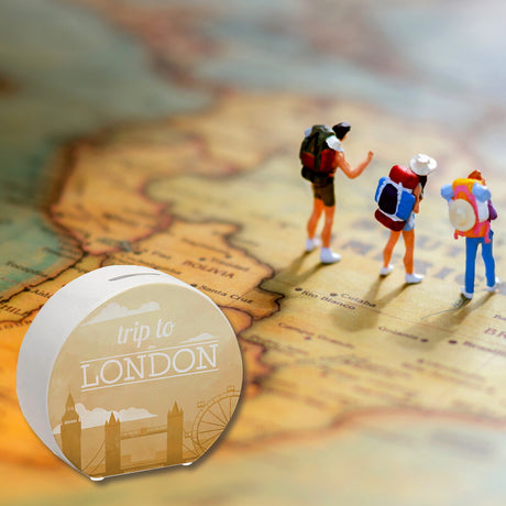 Spardose mit schönem Motiv und Text - Trip to London
