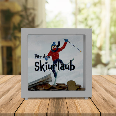 €7,49Grundpreis /Nicht verfügbar Spardose mit lustigem Skifahrer-Motiv und Spruch - Für den Skiurlaub