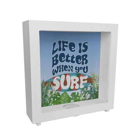 €13,95Grundpreis /Nicht verfügbar Spardose mit schönem Surfbrett Motiv und Spruch - Life is better when you surf