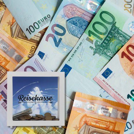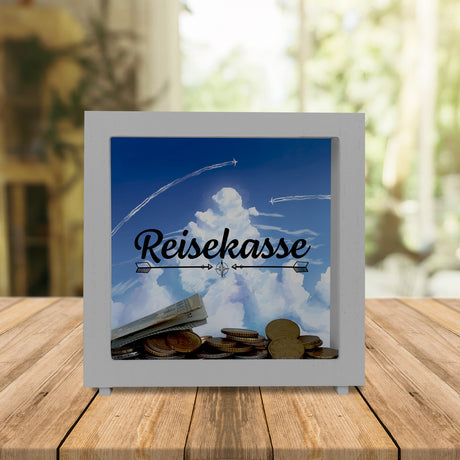 €9,95Grundpreis /Nicht verfügbar Reisekasse Spardose mit schönem Wolkenmotiv und Flugzeugen