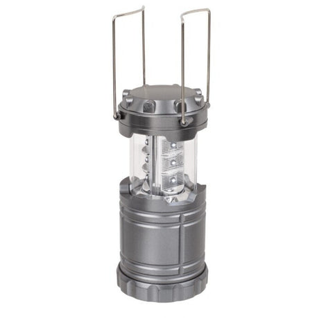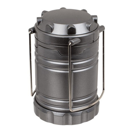 Pop-Up Campingleuchte in silber mit Tragegriffen